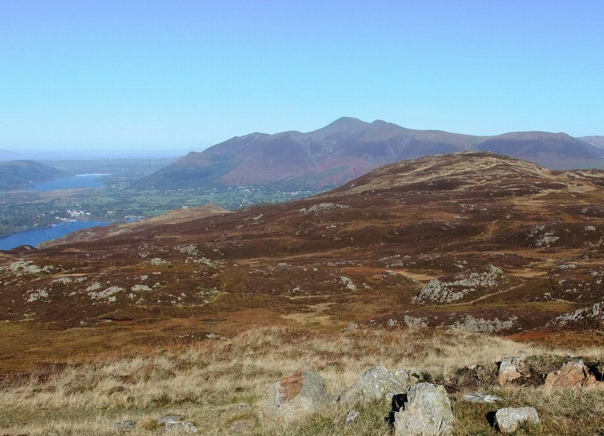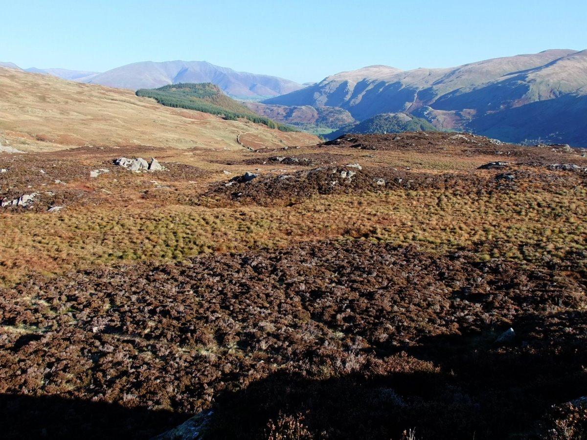Raven Crag among the pines in the near distance , from Armboth Fell.