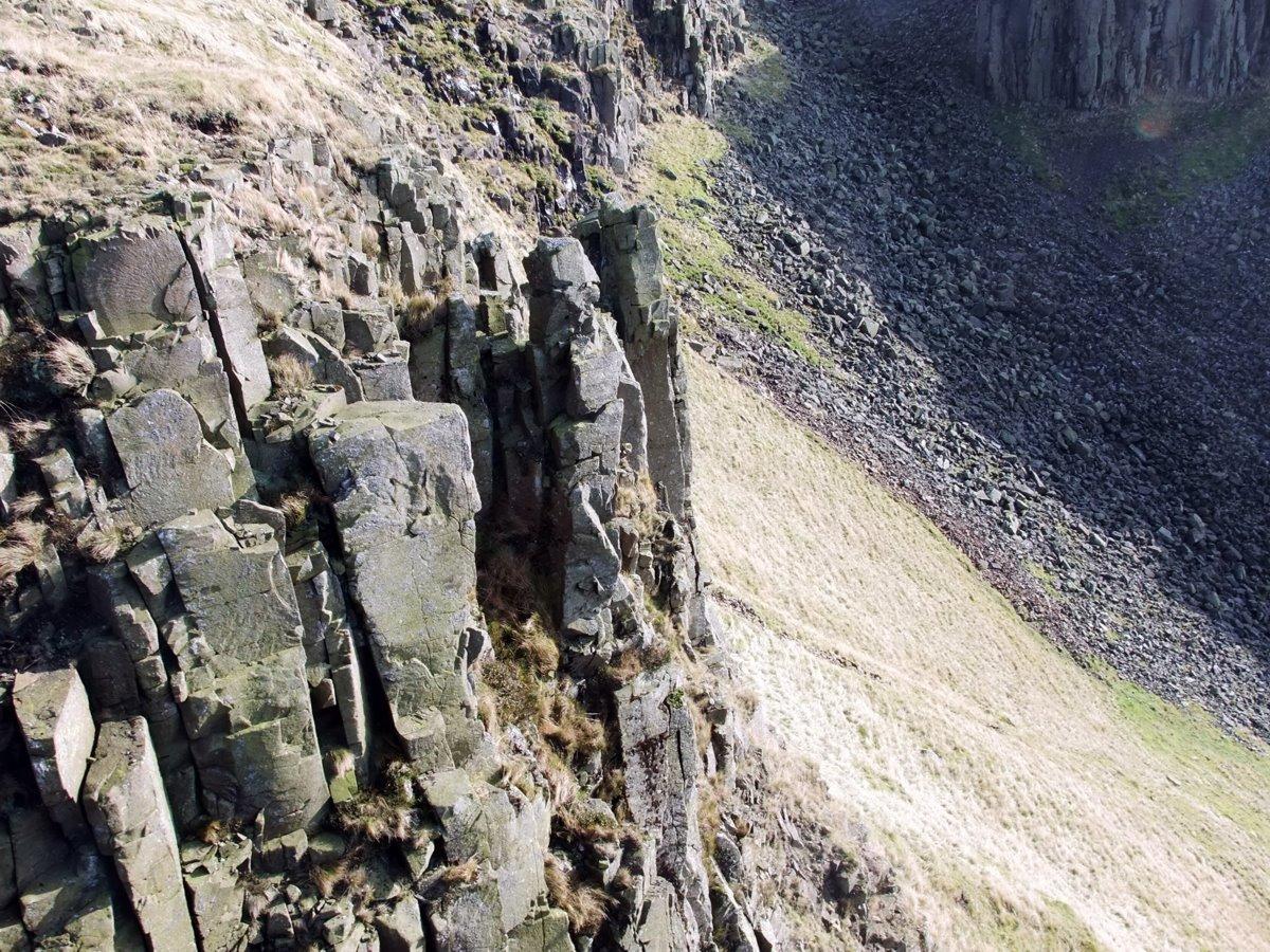 Looking back up the boulder scree to the head of Cup Nick.