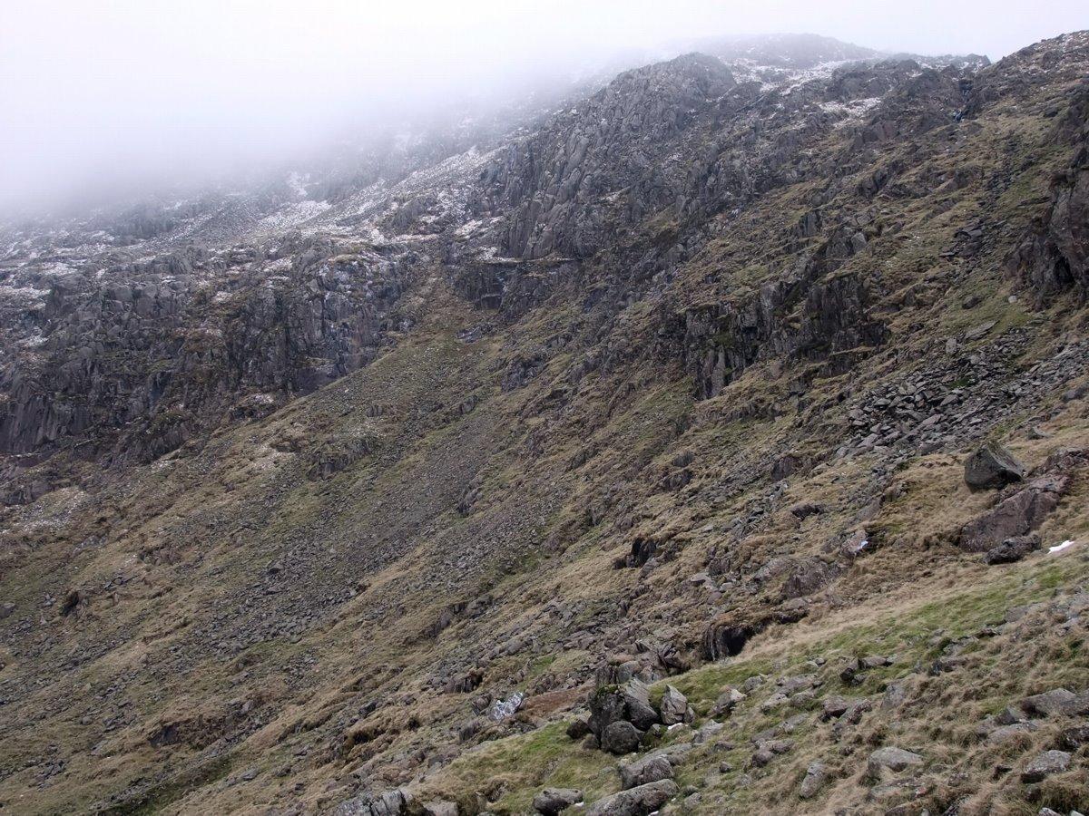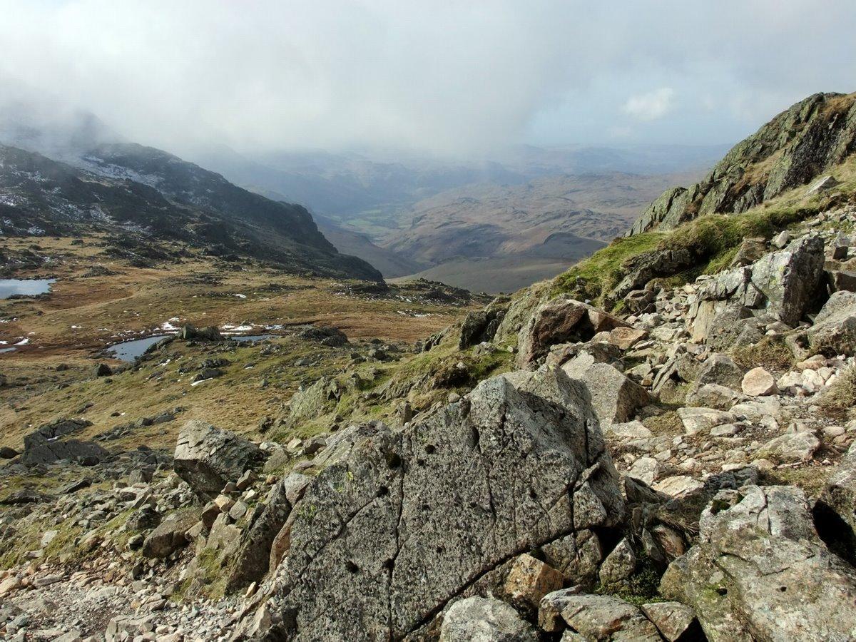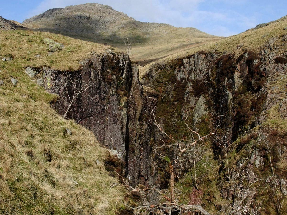 Upper reaches of Hell Gill. Bowfell on the skyline.