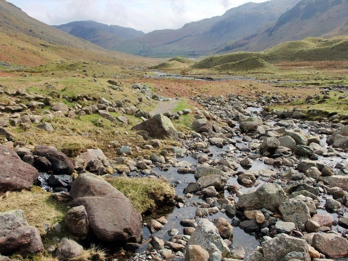 Looking back up Mickleden to Rossett Pike.