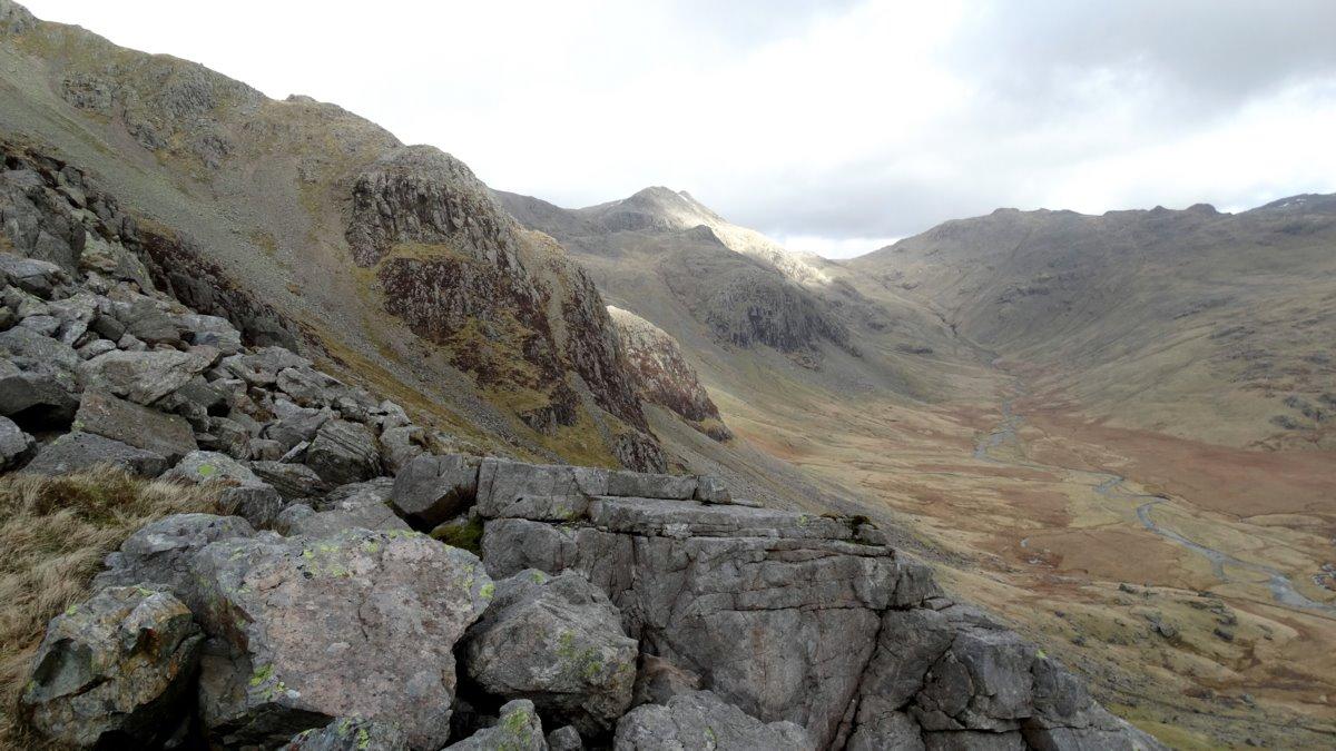 Just above the gully which will take me down to the scree.