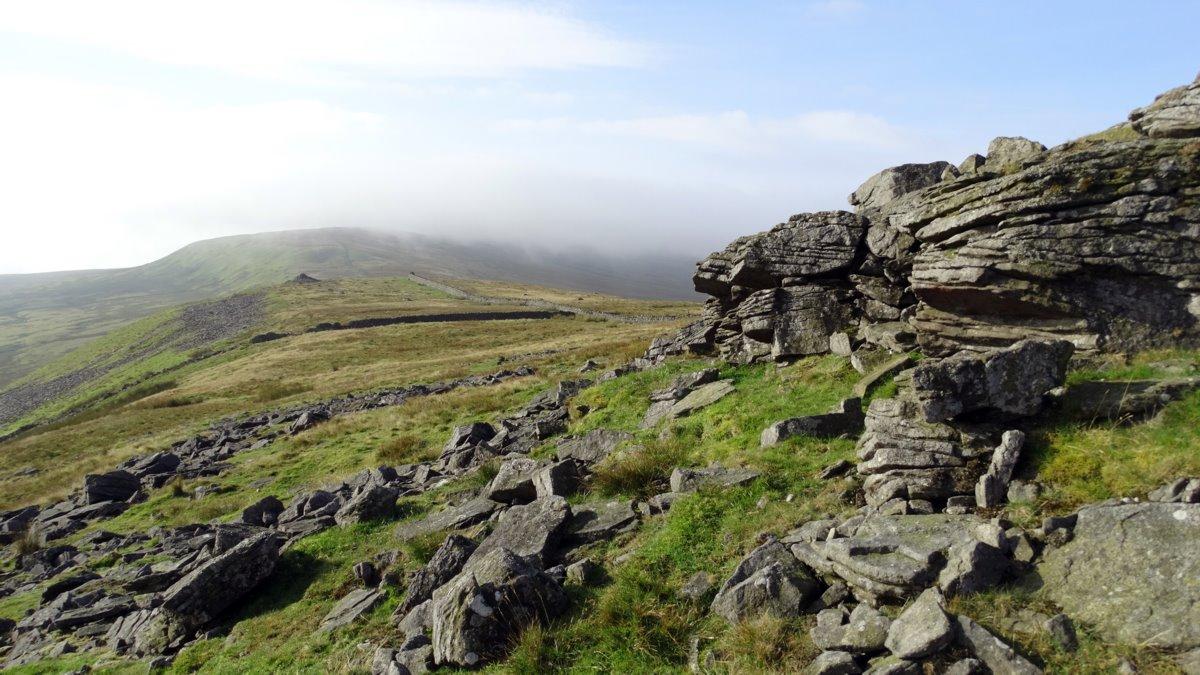 Reversing the journey. Gatty Pike and Green Hill in the distance.