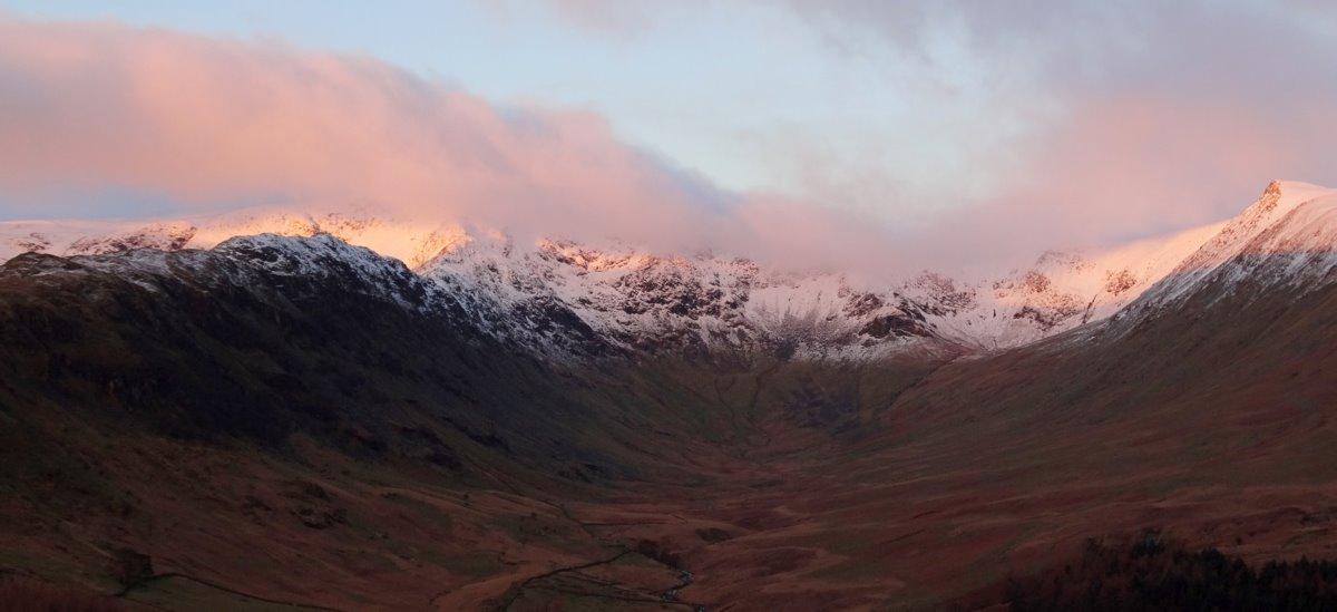 Sun just hitting the tops. Kidsty Pike through right to Whelter Crags.