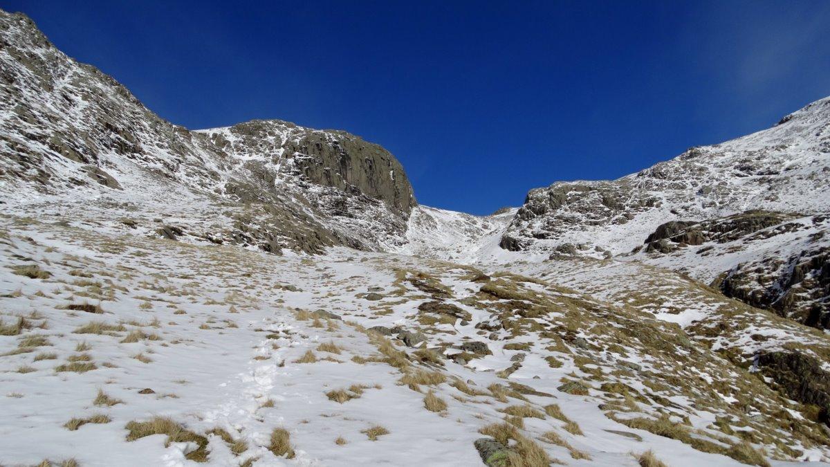 Up the combe towards Mickledore and East Buttress.