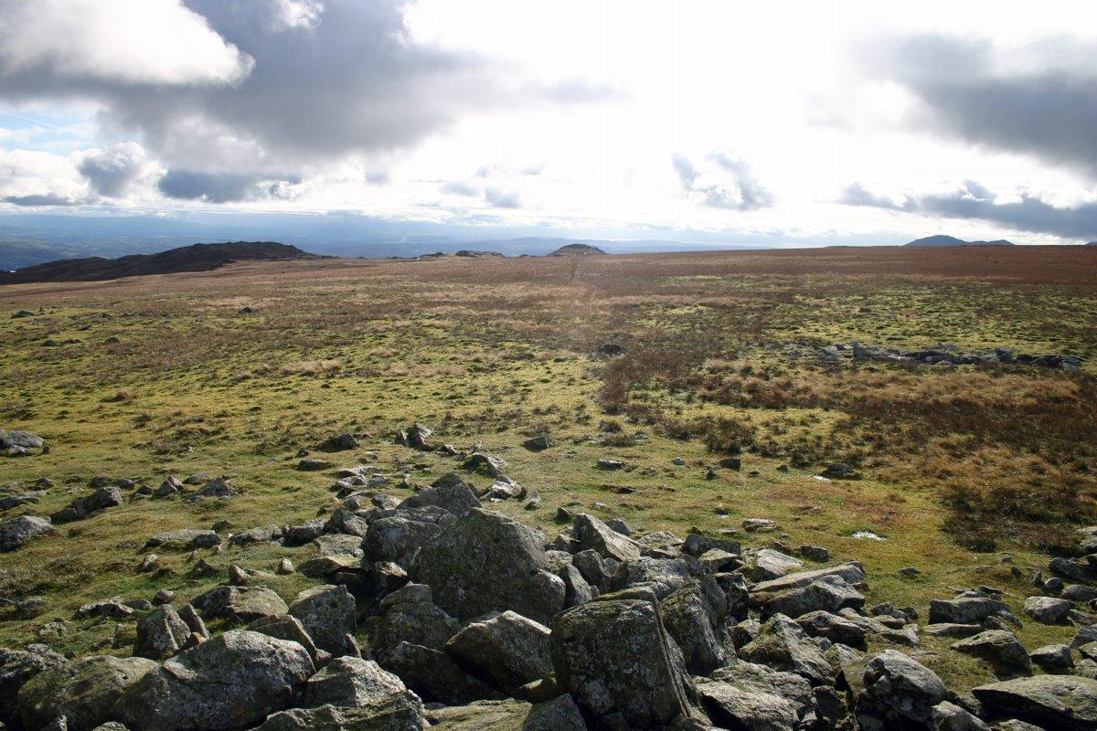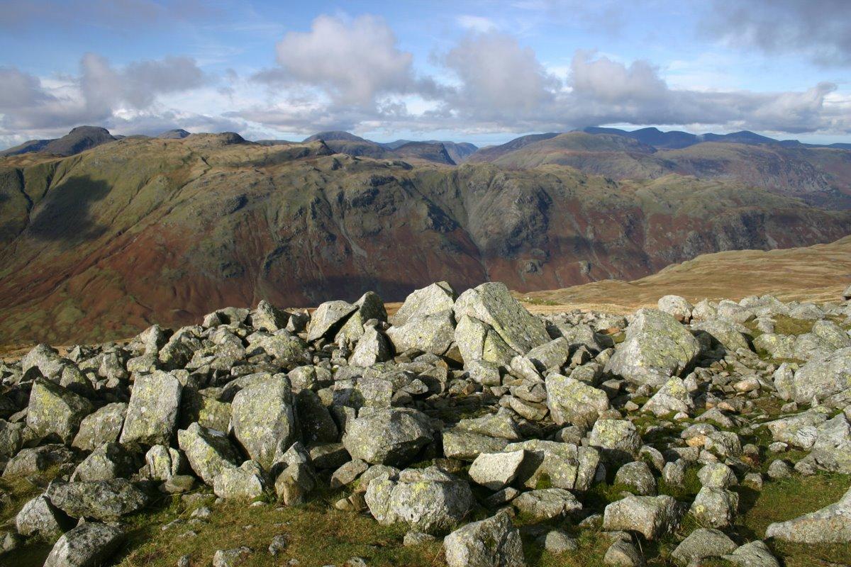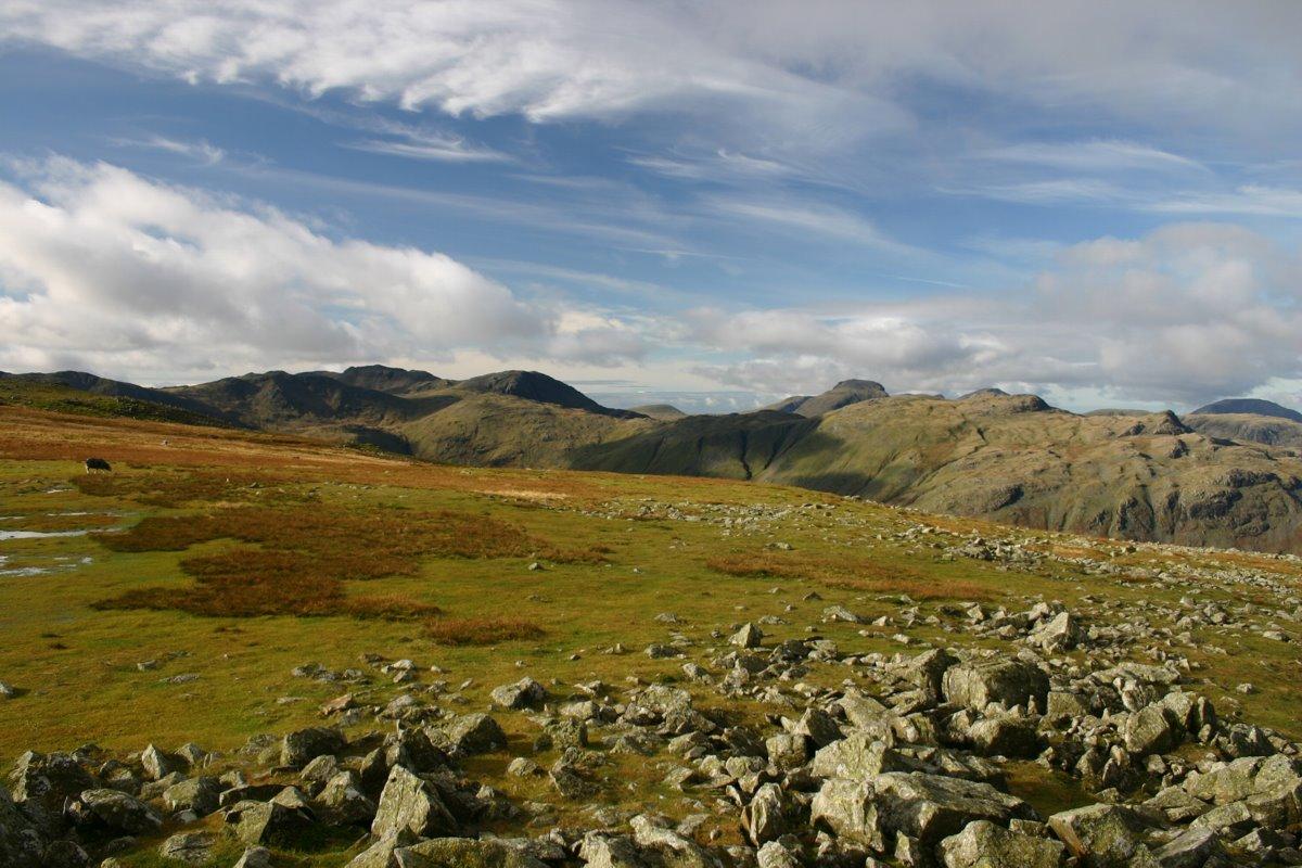 Looking towards Derwentwater from Low White Stones. Sergeant Crag and Eagle Crag in shadow.
