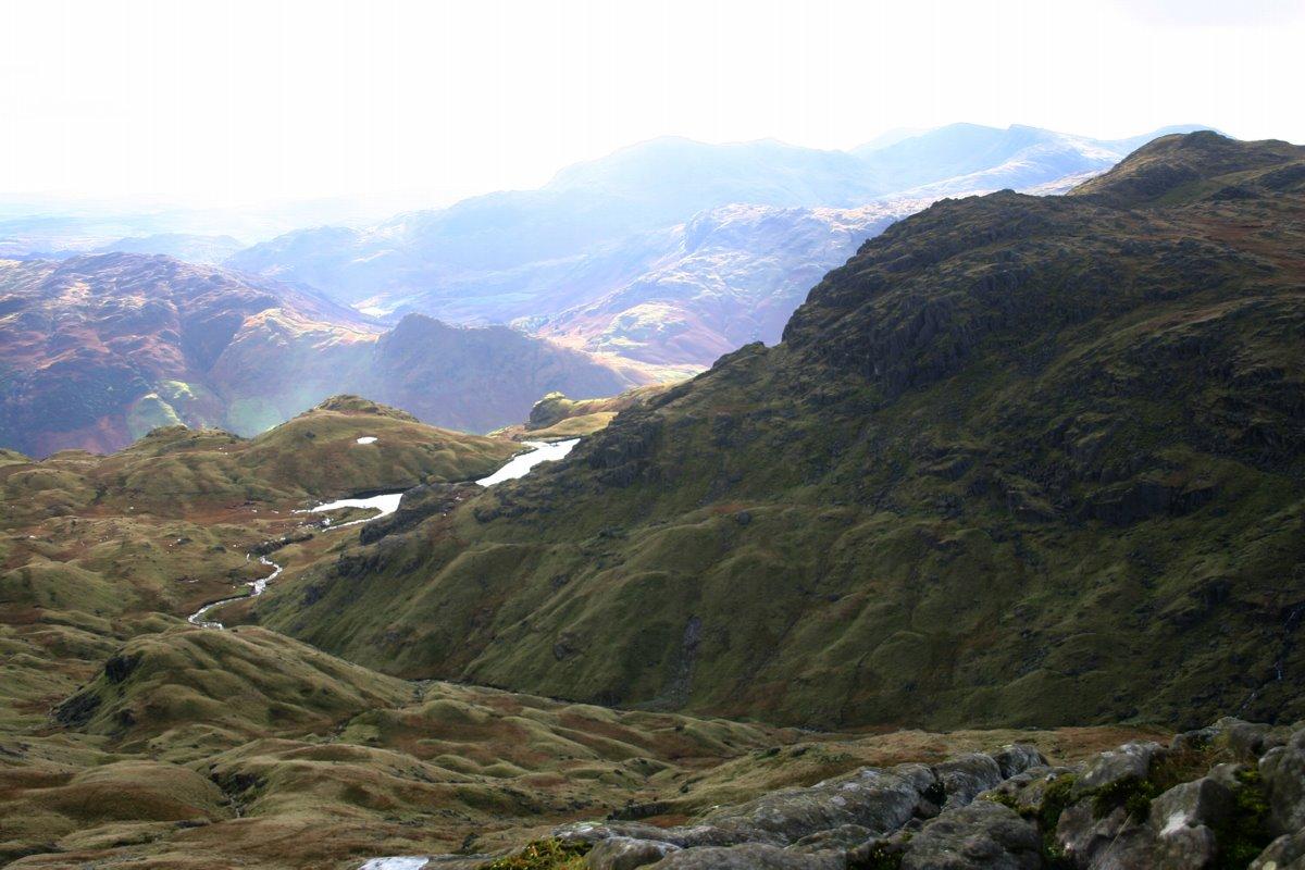 From Sergeant Crag looking down towards Pavey Ark Stickle Tarn and Langdale.