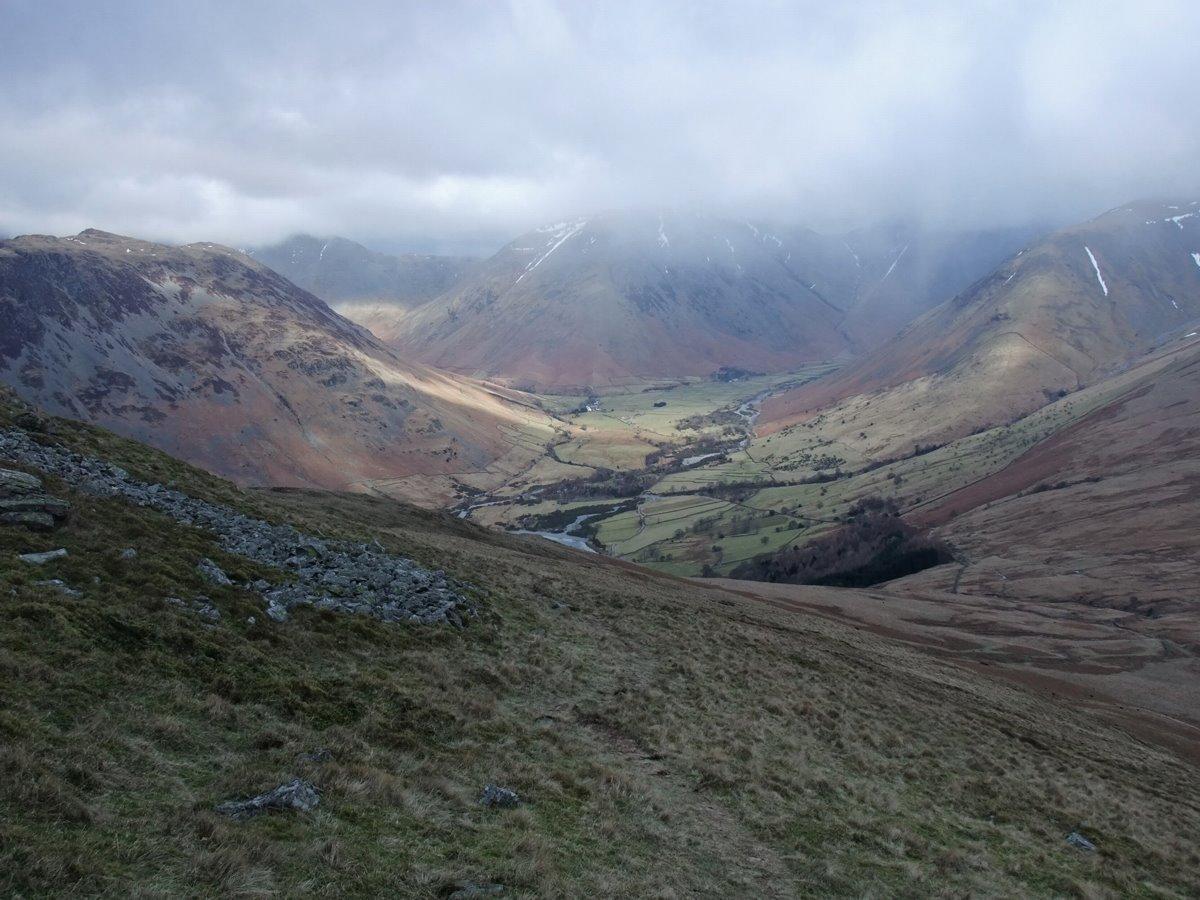 The descent from Whin Rigg with Burnmoor Tarn below.