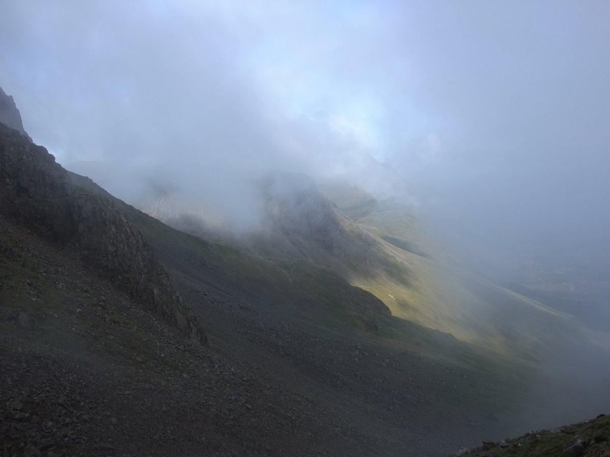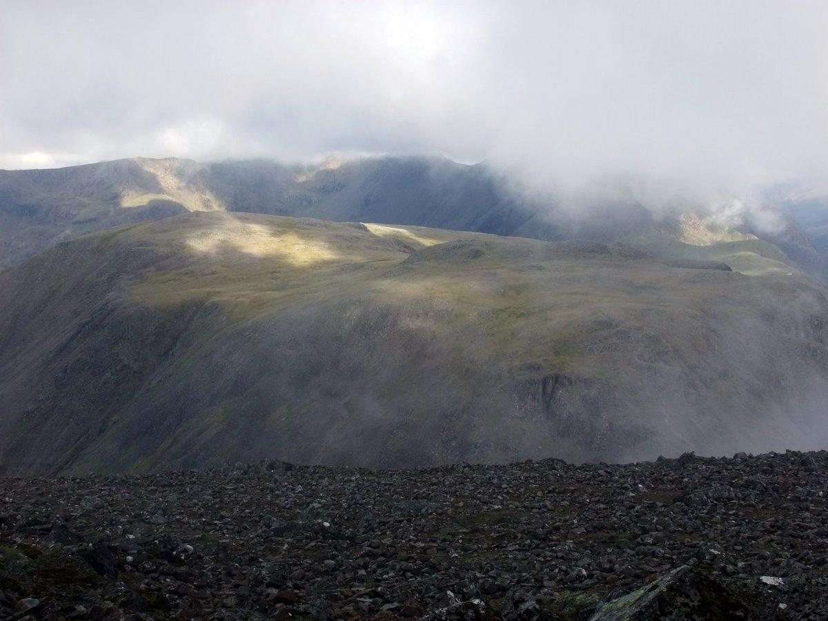 The north face of Great Gable is still obscured by cloud....