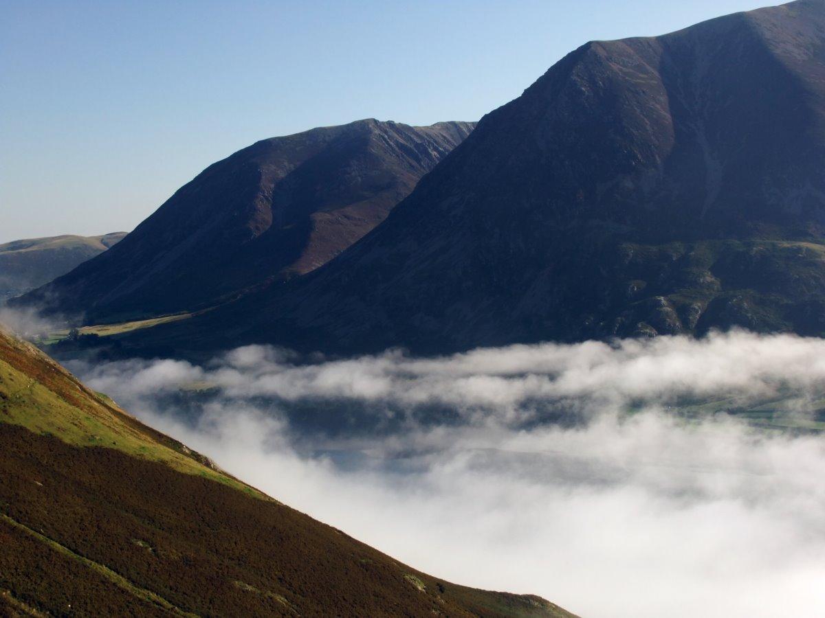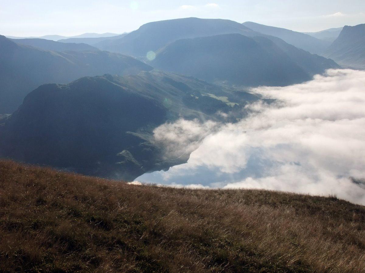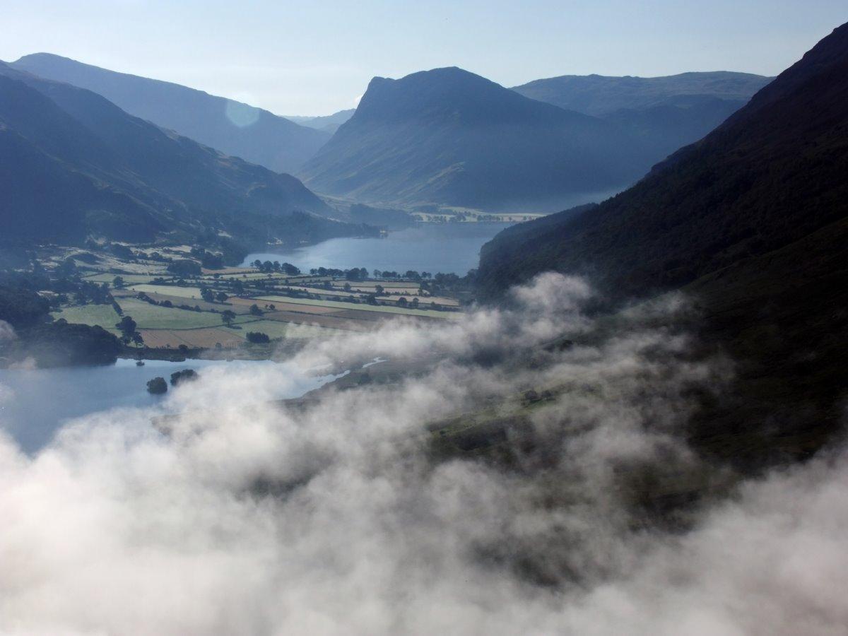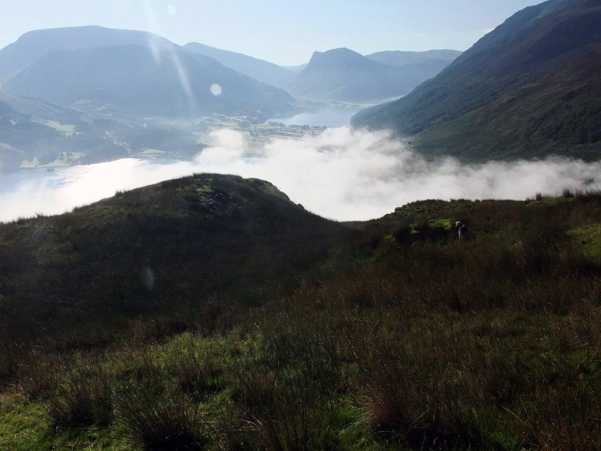 From Scale Knott looking down to the mist clearing of Crummock Water.