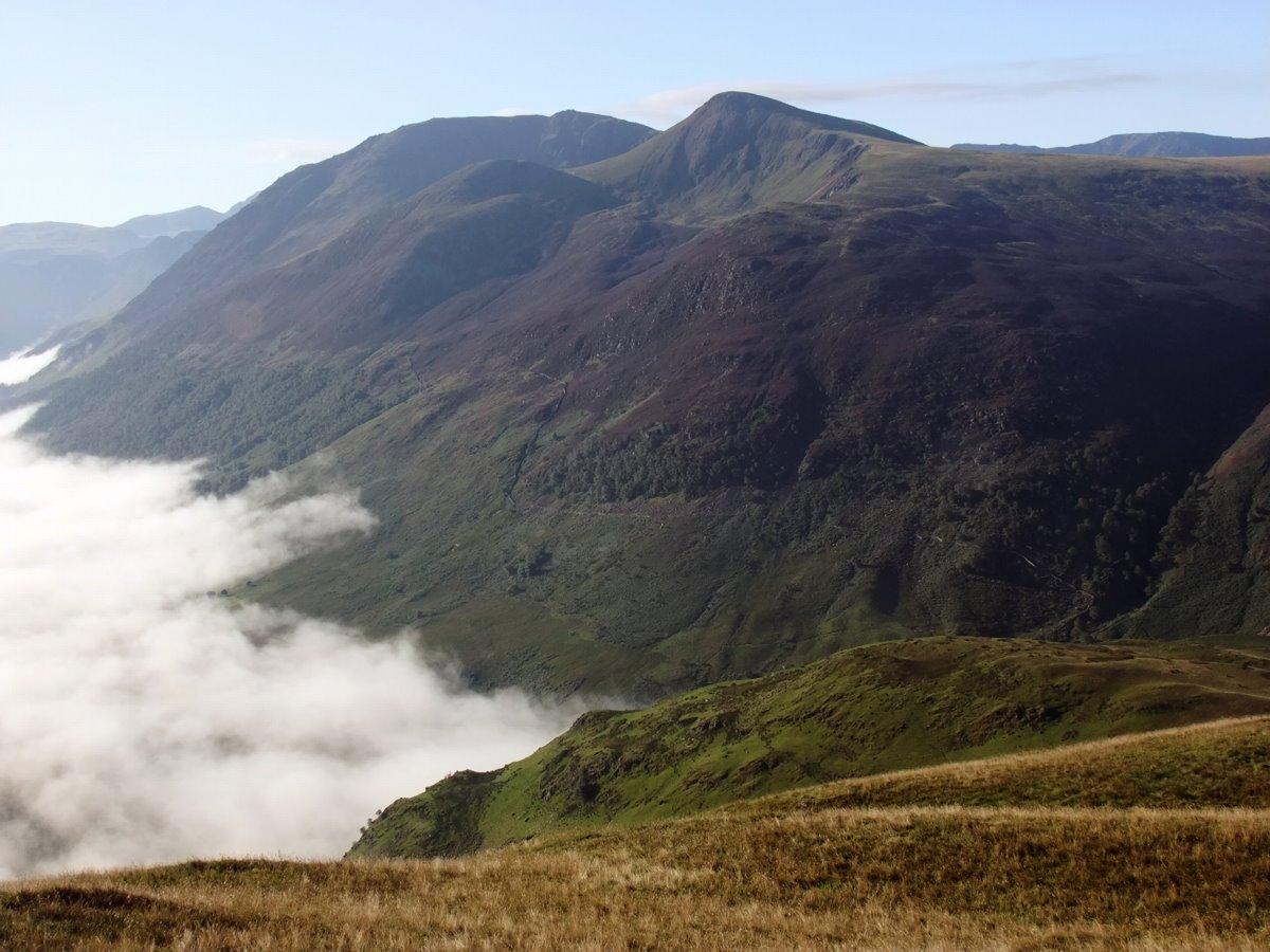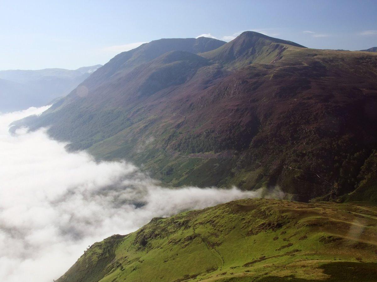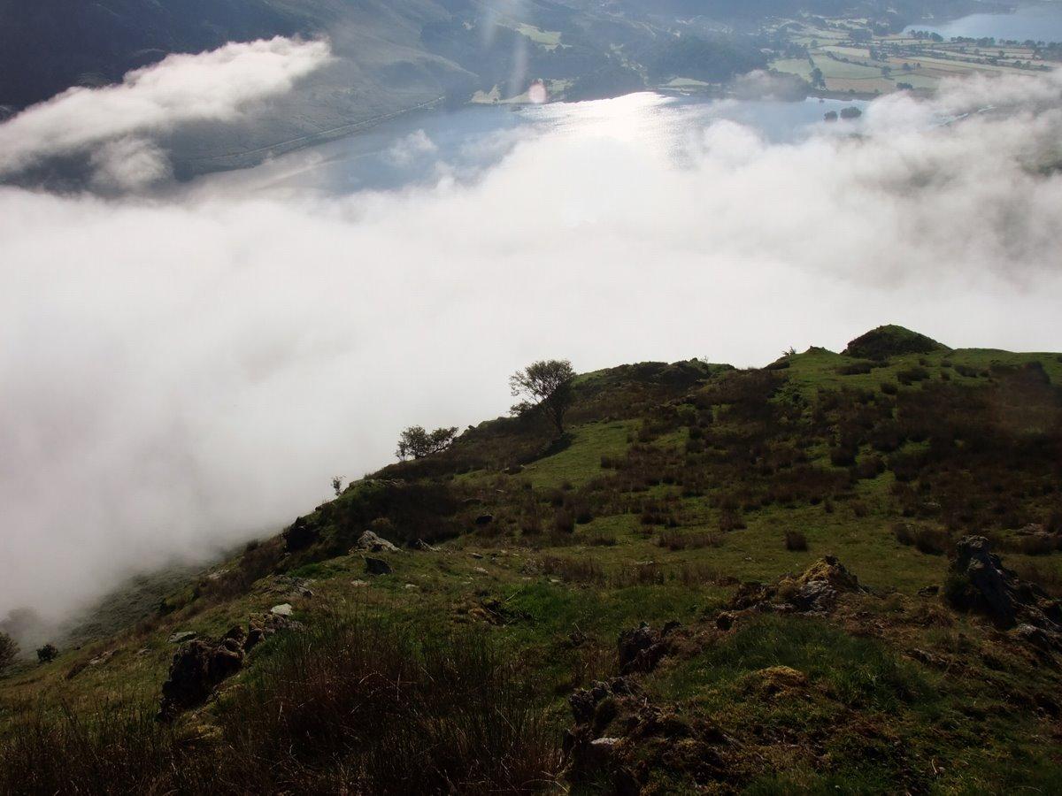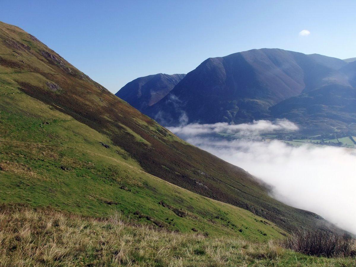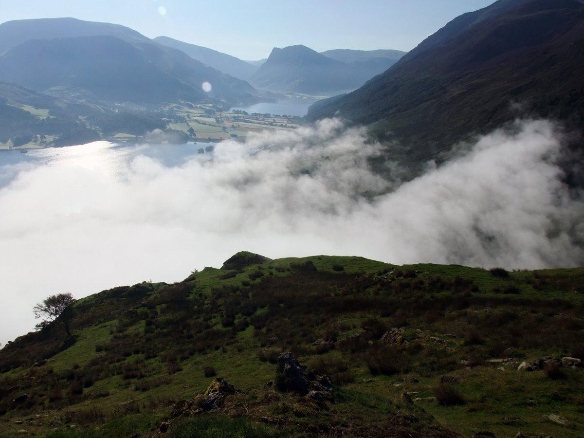 From Scale Knott looking down to the mist clearing of Crummock Water.