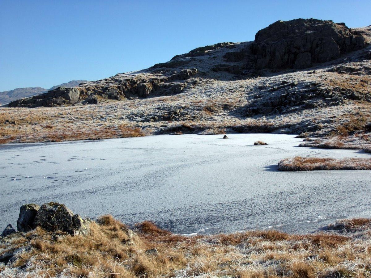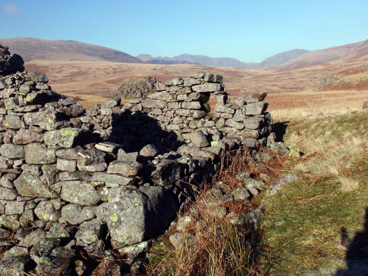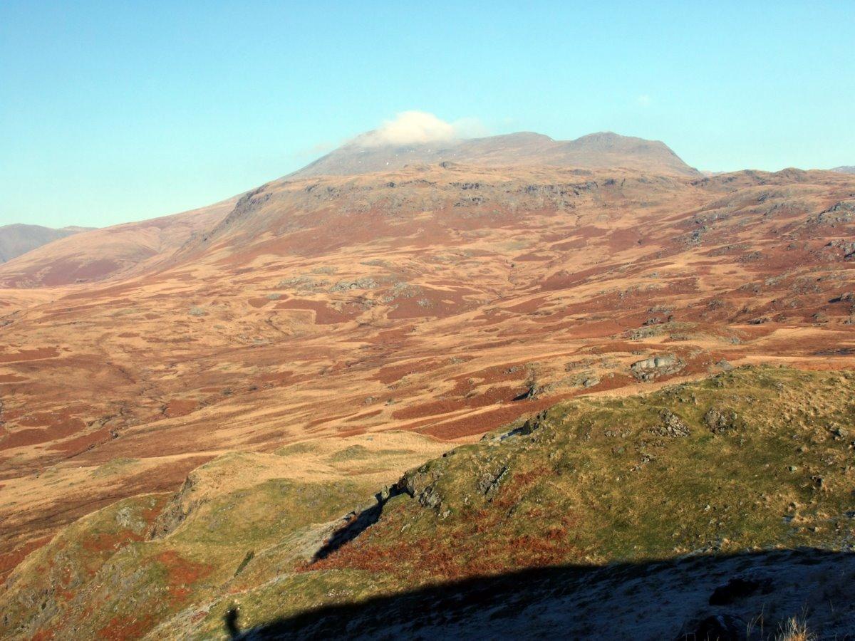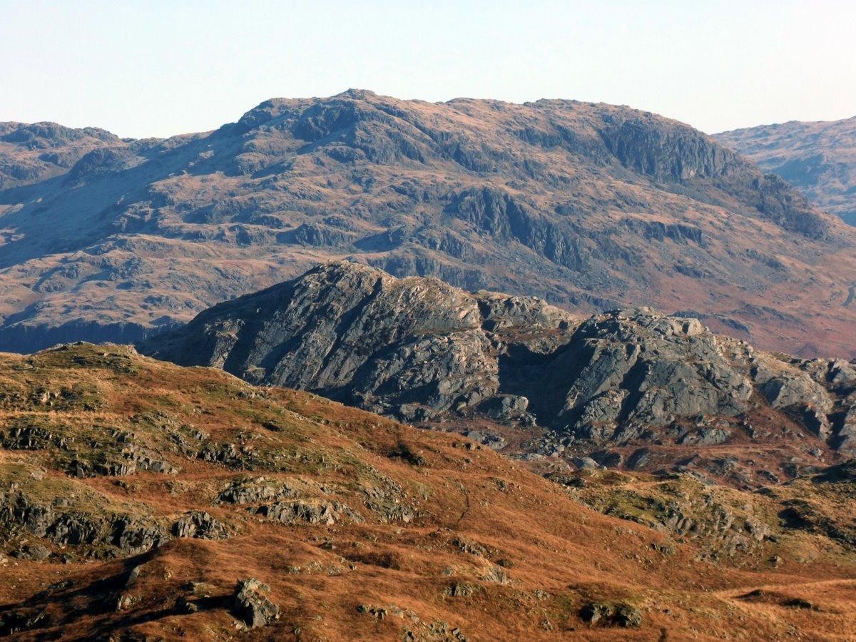 Quagrigg Moss from Great How. Bowfell and the Crinkles on the skyline.