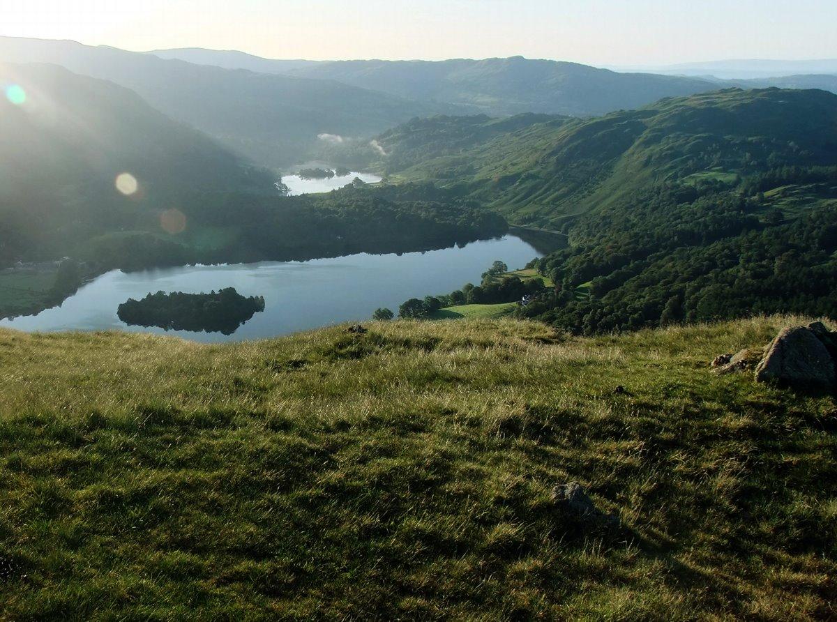 Grasmere with Rydal  water in the distance from Silver How.