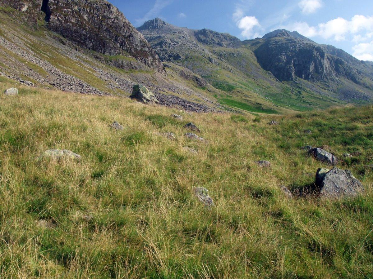 Scafell Pike and Ill Crag on the skyline.