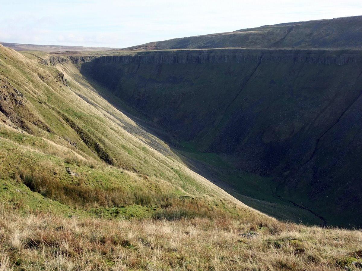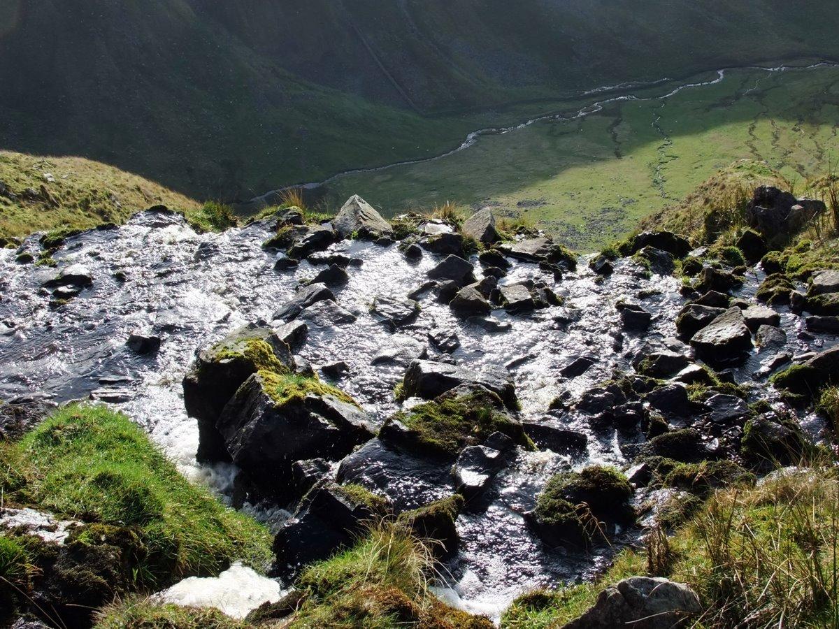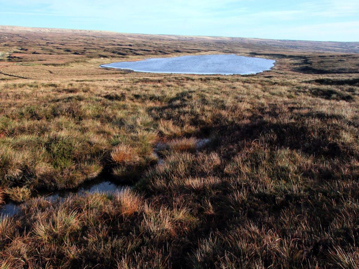 Emerging onto the moorland with Great Rundale Tarn ahead.