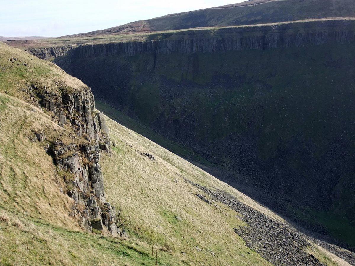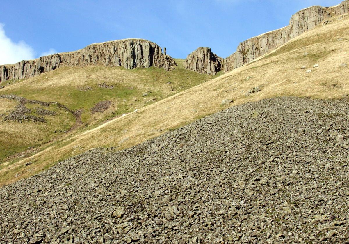 Looking back up the boulder scree to the head of Cup Nick.