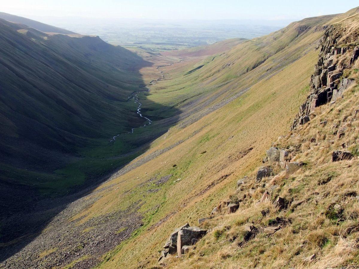Looking down Cup Nick towards the Eden Valley.