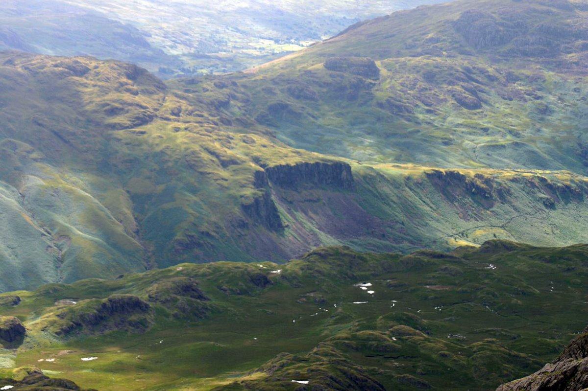Looking back across flanks of Scafell to Esk Pike.