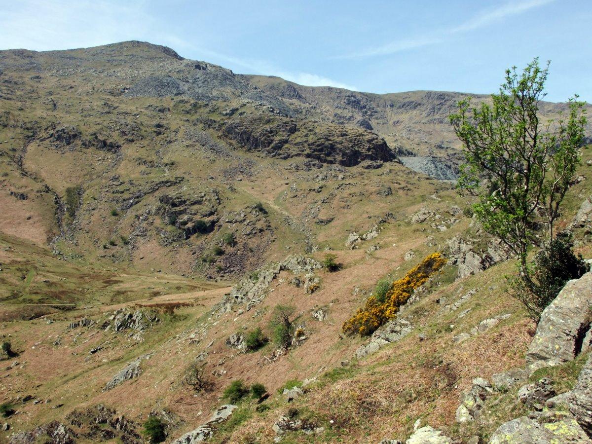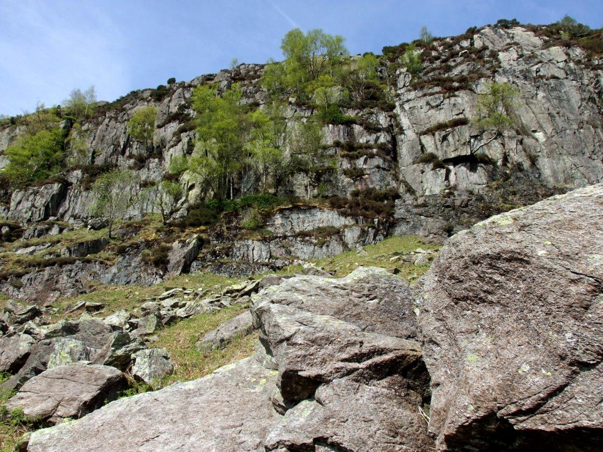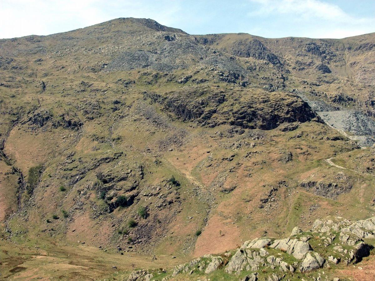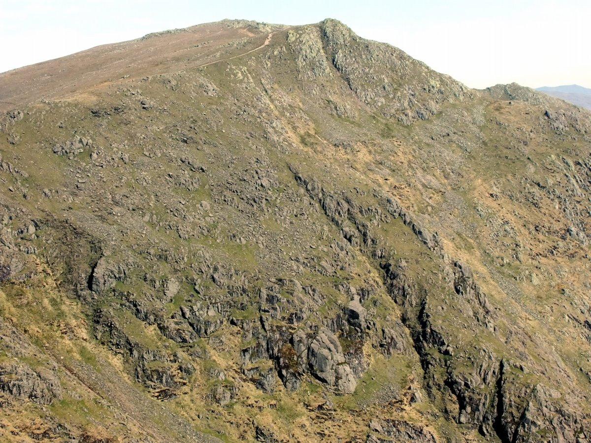 Close up of Dow Crag. Left to right. South Rake, Easy Gully, Great Gully.
