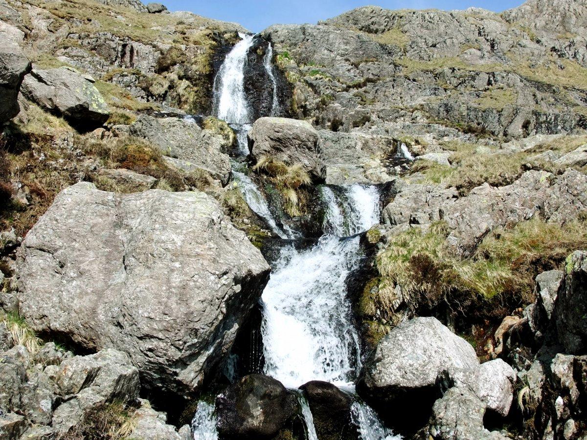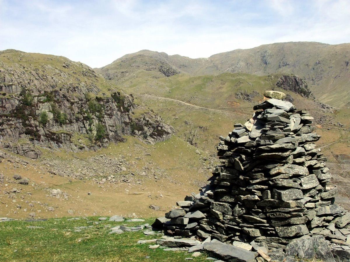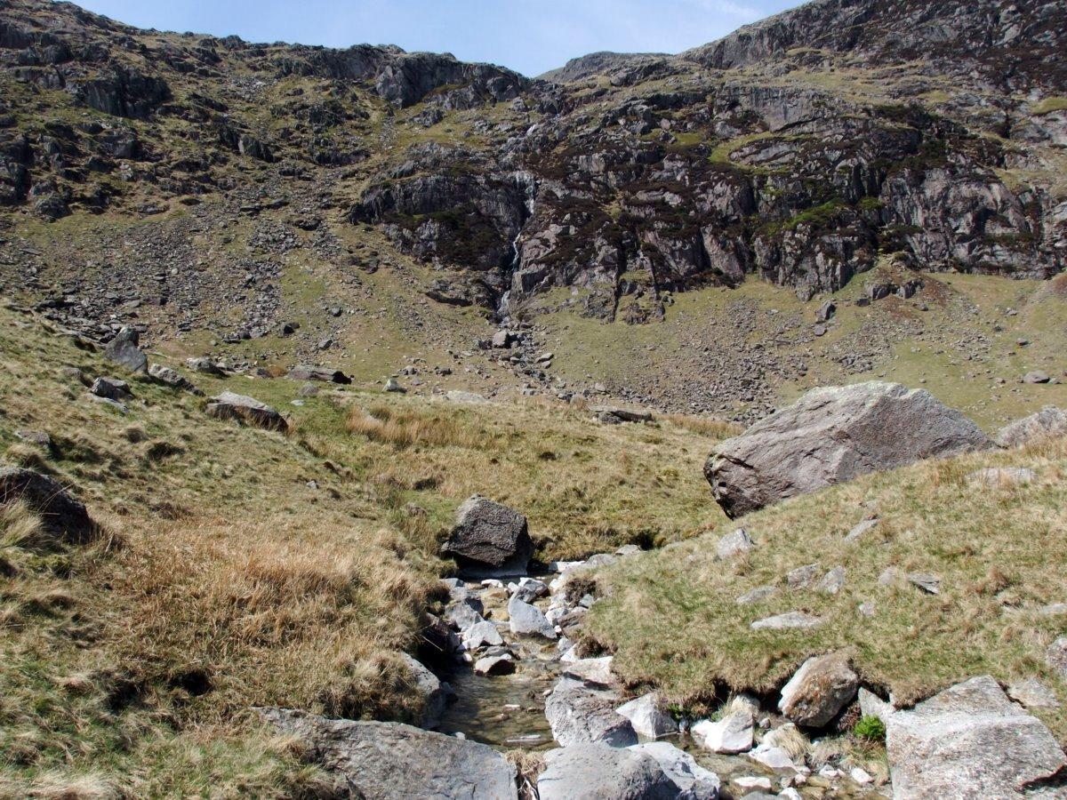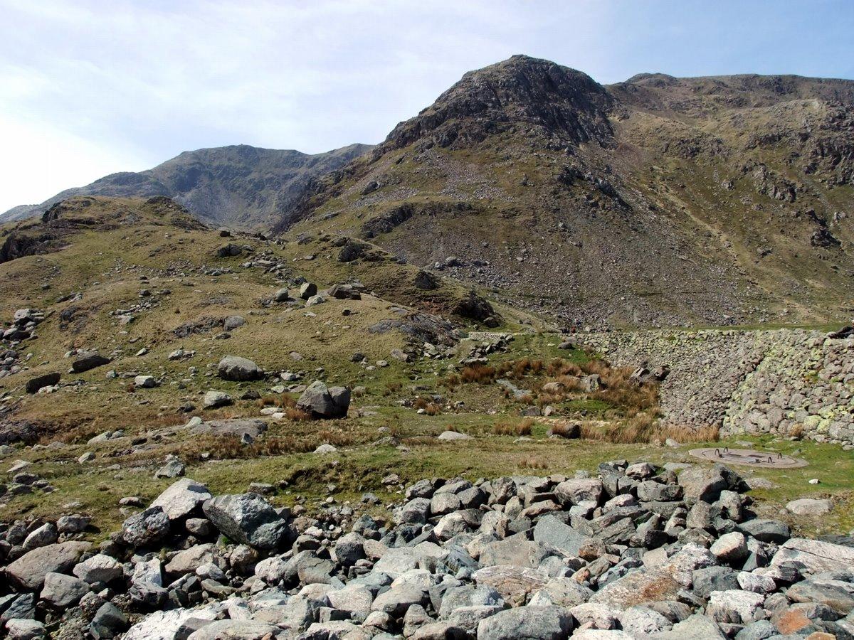 Close up of Dow Crag. Left to right. South Rake, Easy Gully, Great Gully.