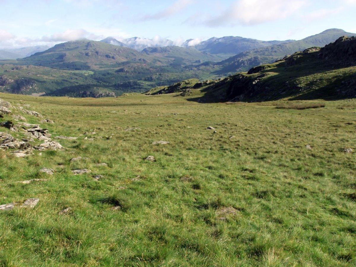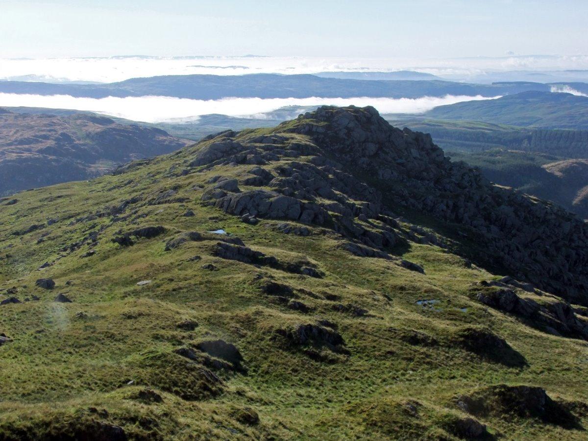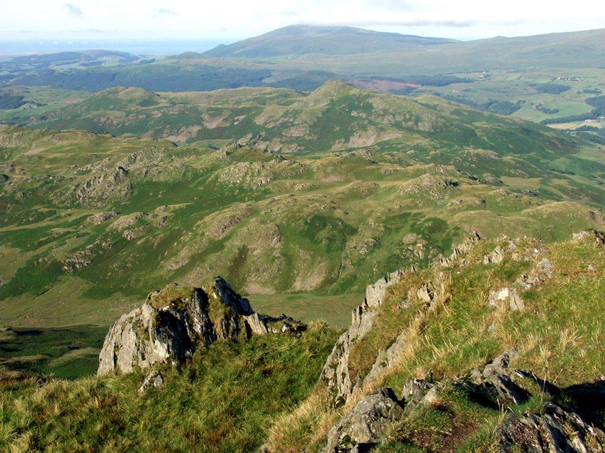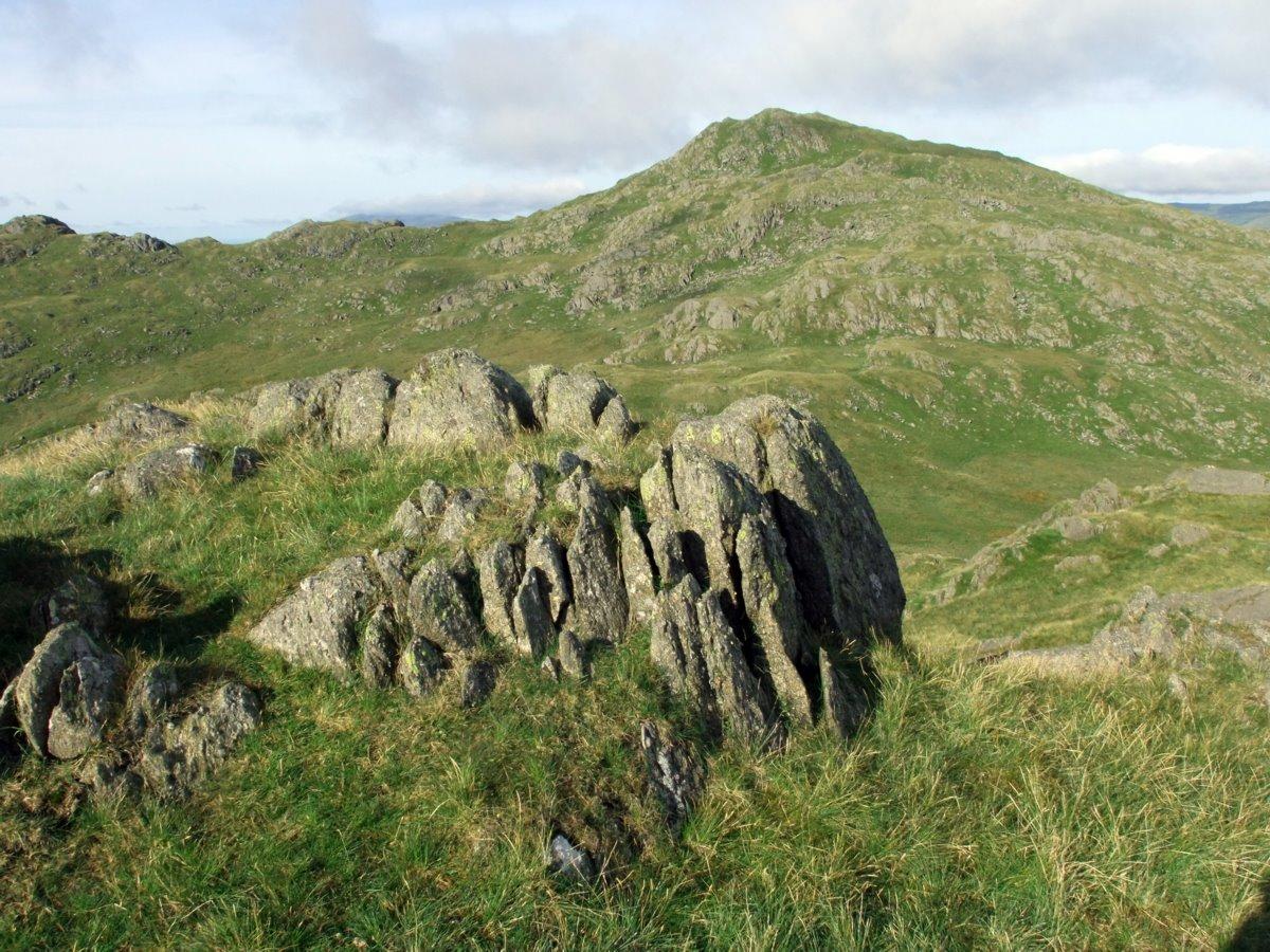 Black Combe centre skyline with Stickle Pike in the centre of the picture. From Caw.