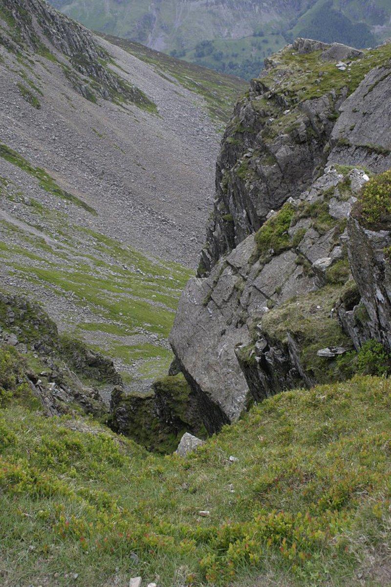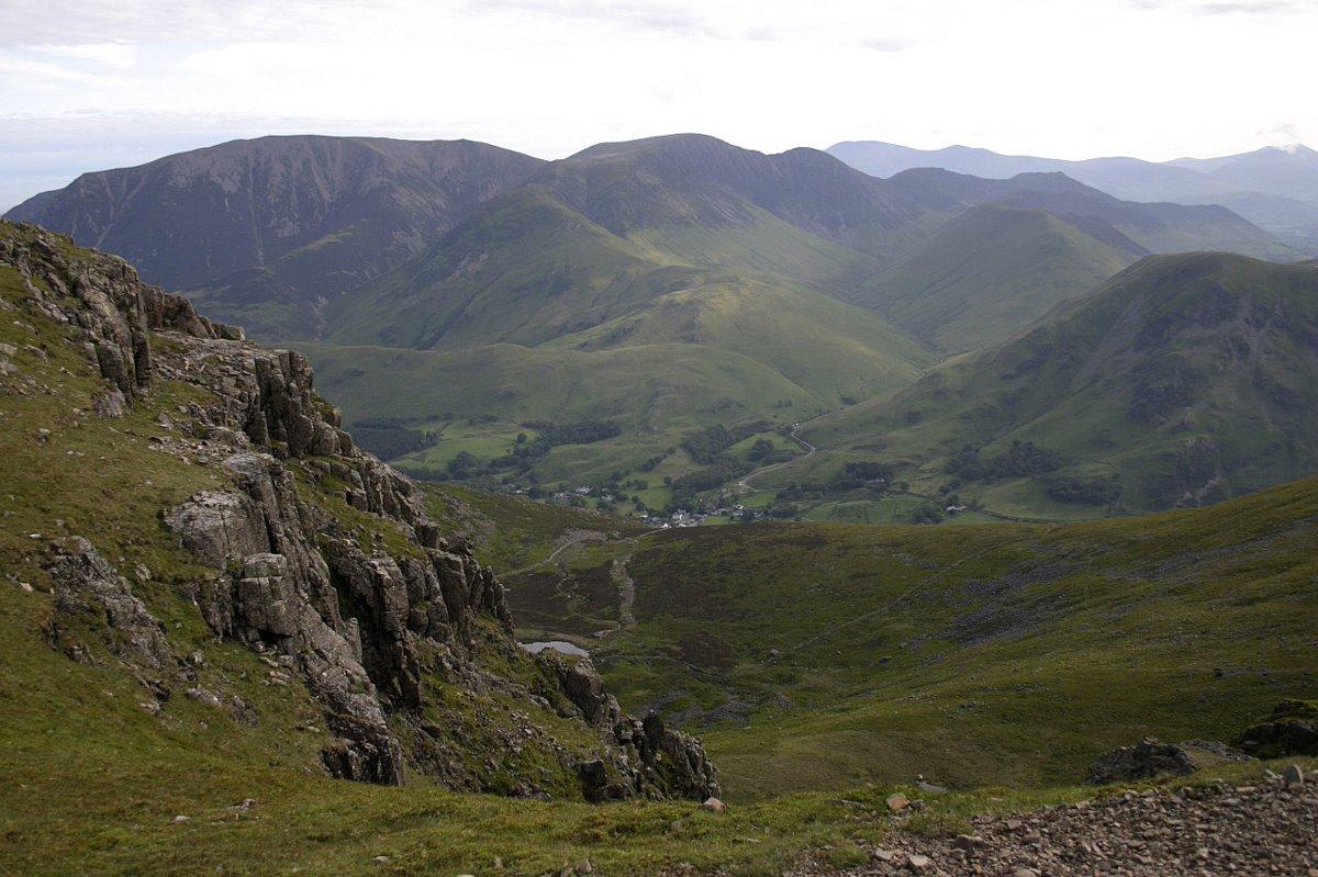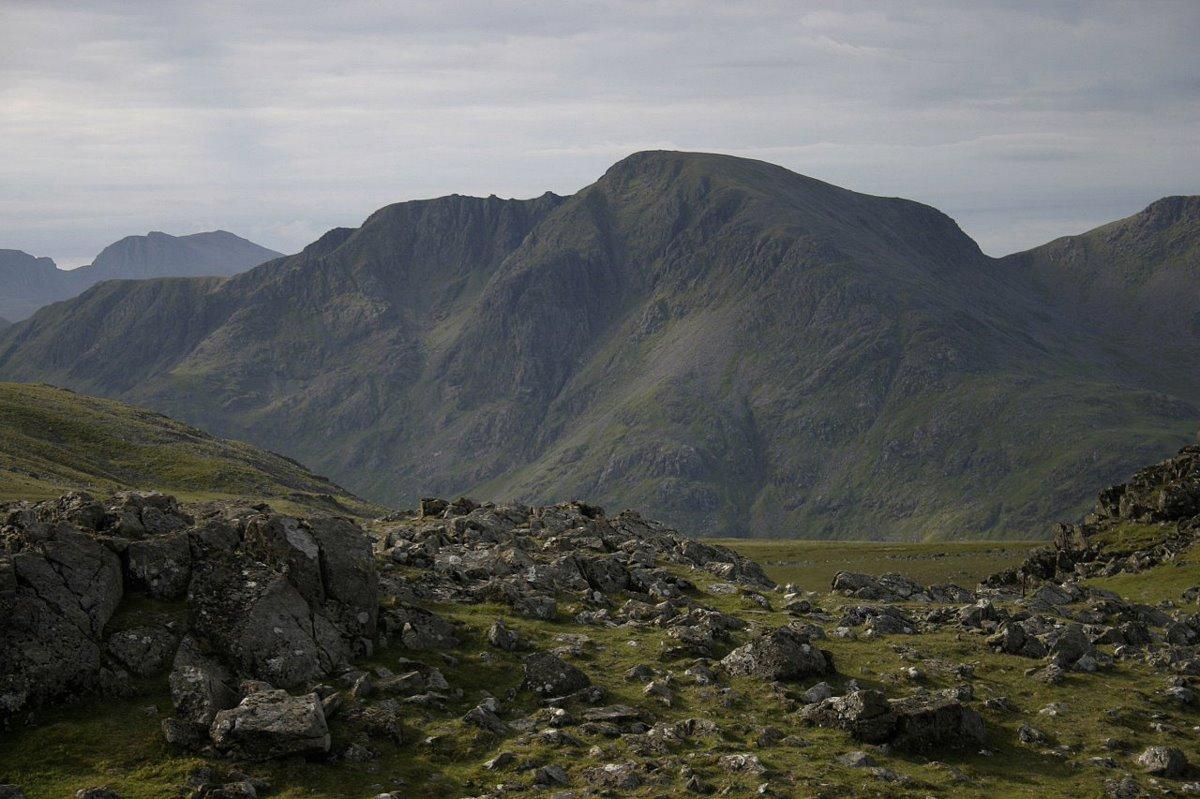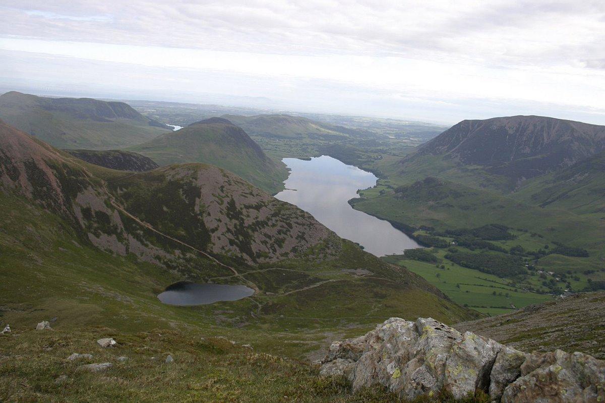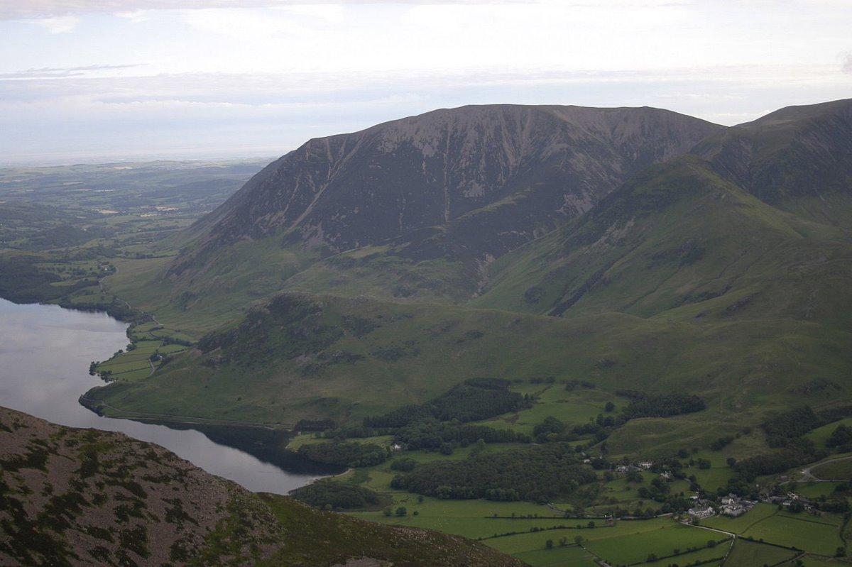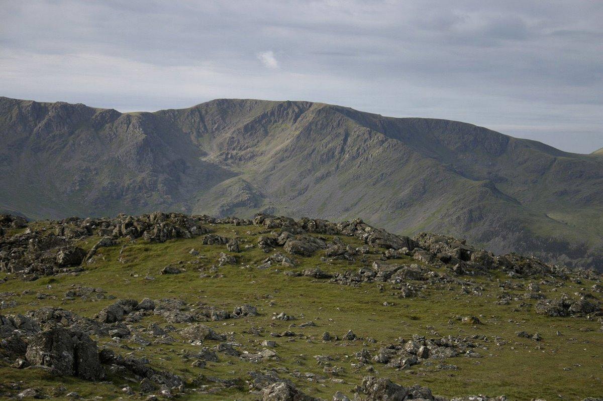 Dodd rising above Bleaberry Tarn with steep descent route from Red Pike.