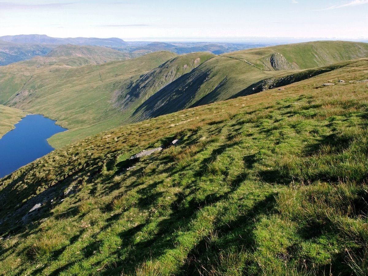 Rough Crag and Long Stile with Caspel Gate tarn central to the ridge.