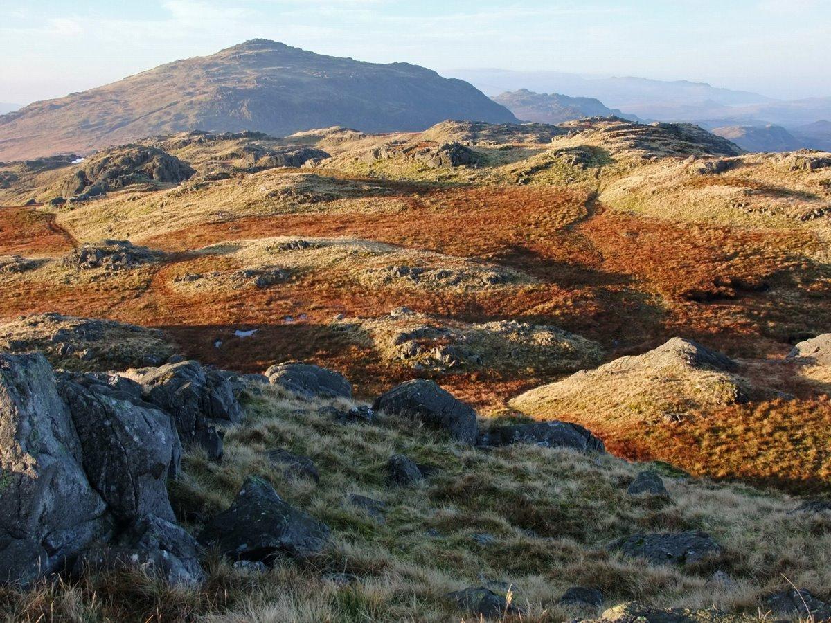 Looking back towards Border End on the right. Harter Fell in the distance.