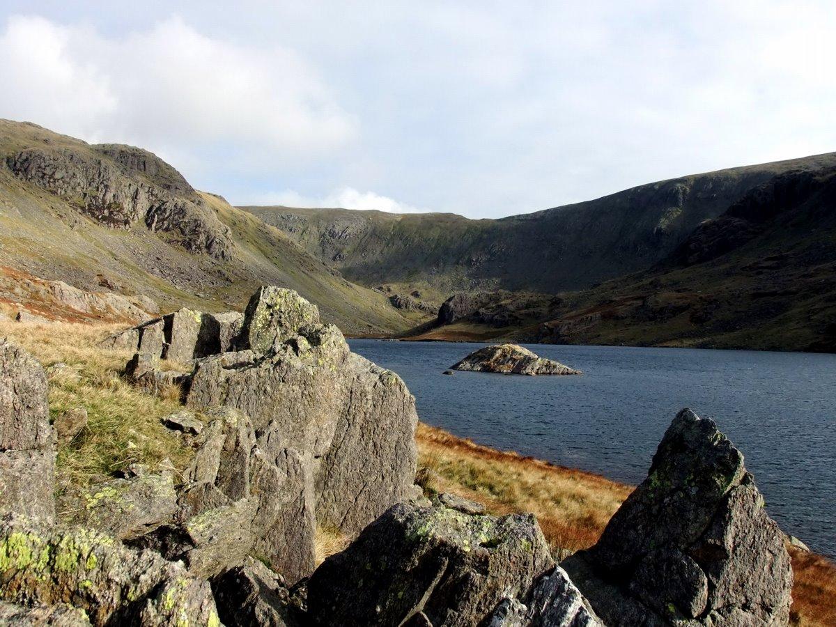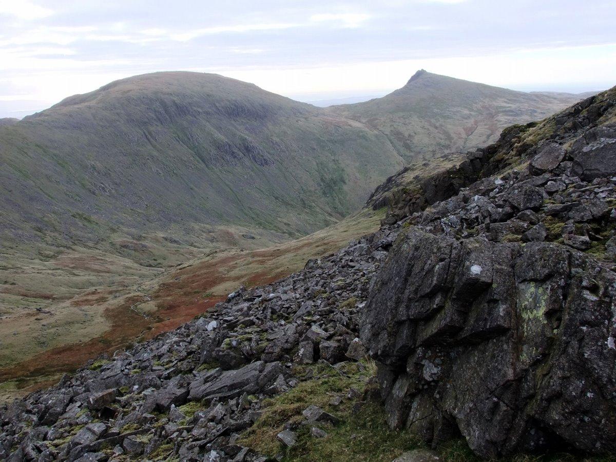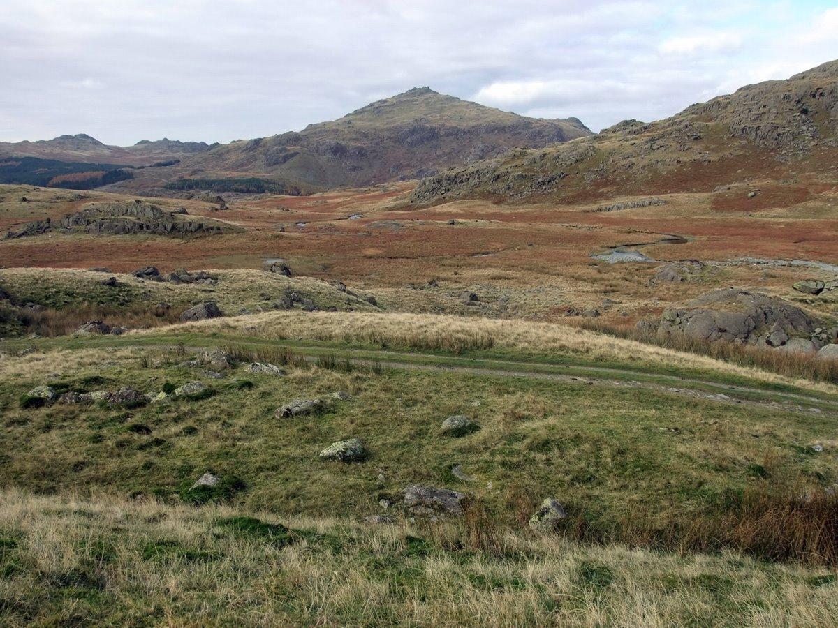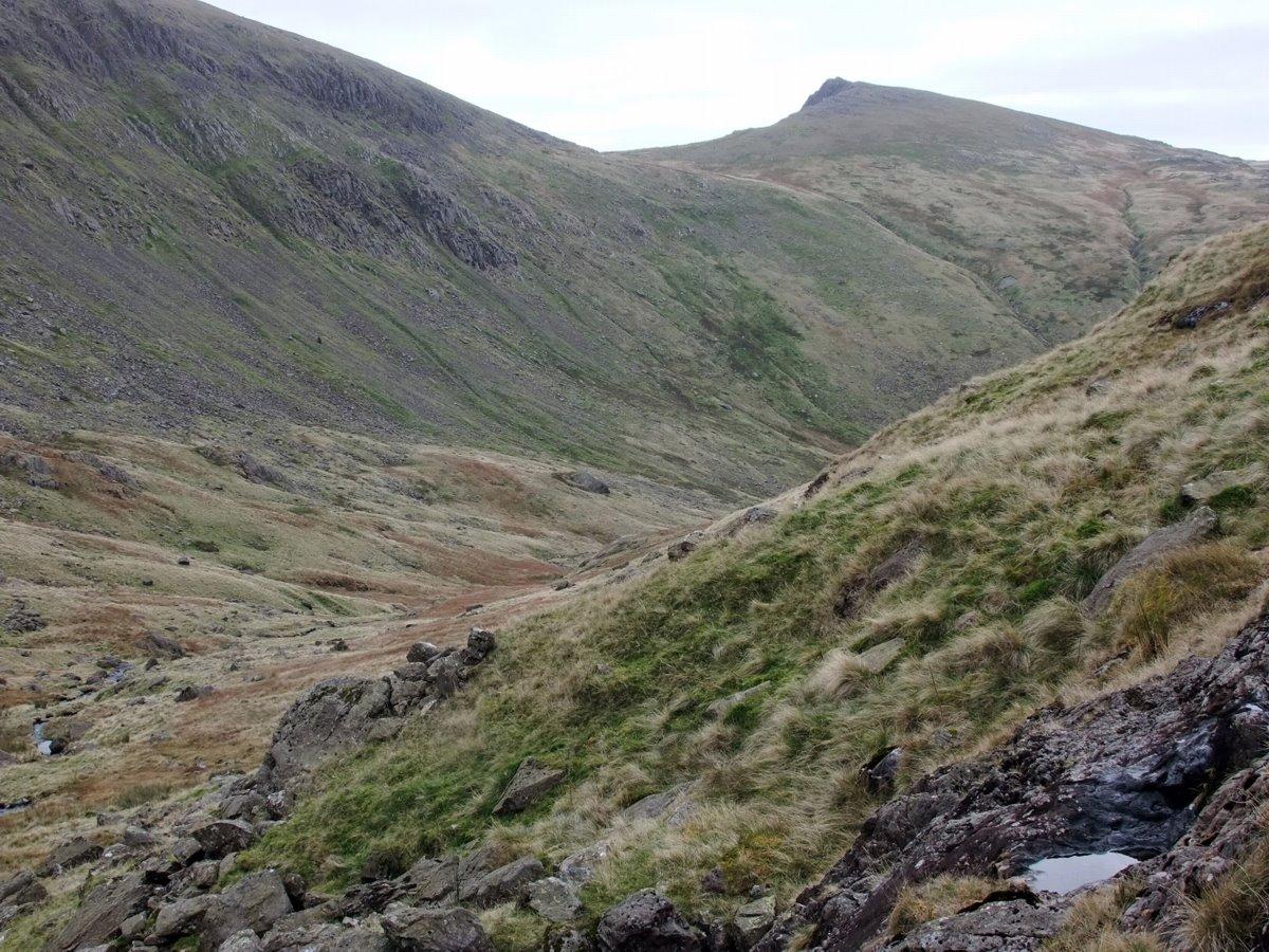 Descent to Calf Cove. Brim Fell and Dow Crag on the skyline.