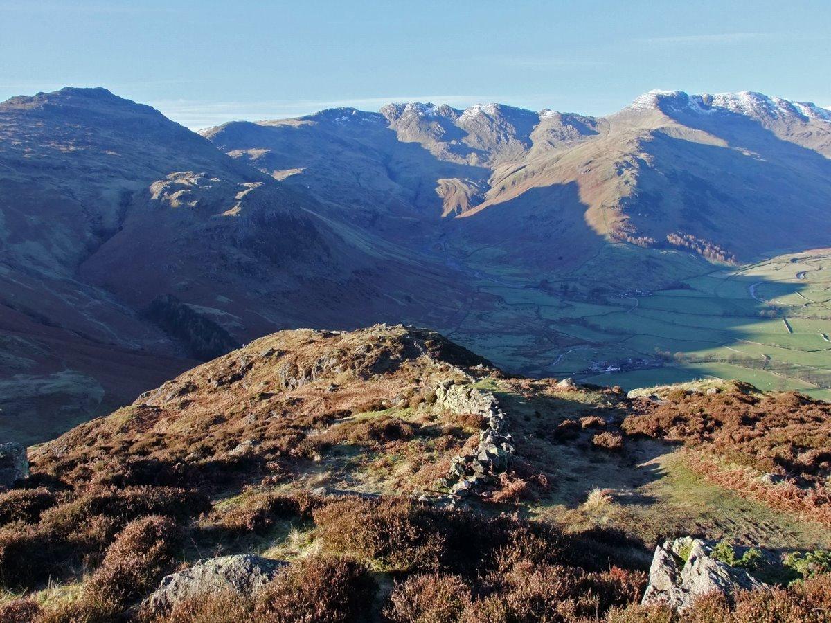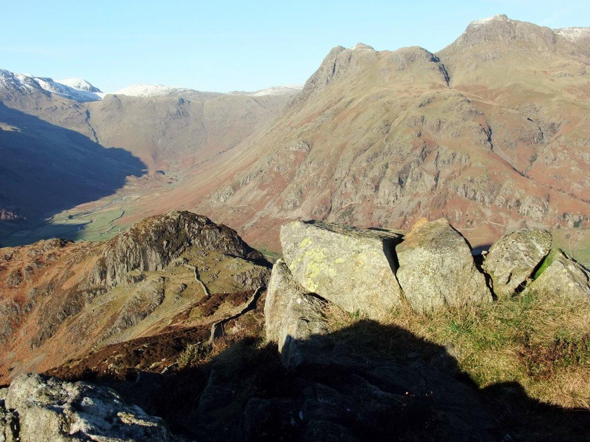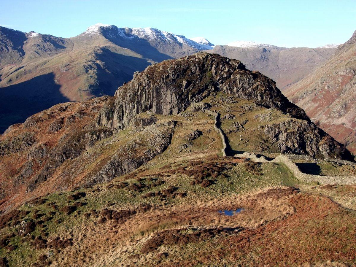 Close up of Bowfell and the ridge extending to Esk Pike and Great End .