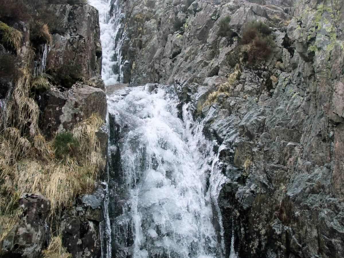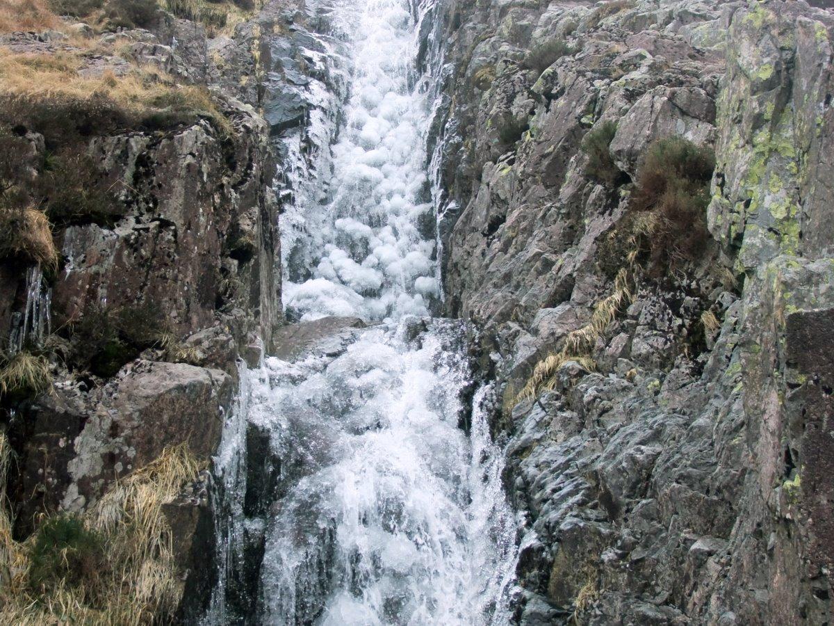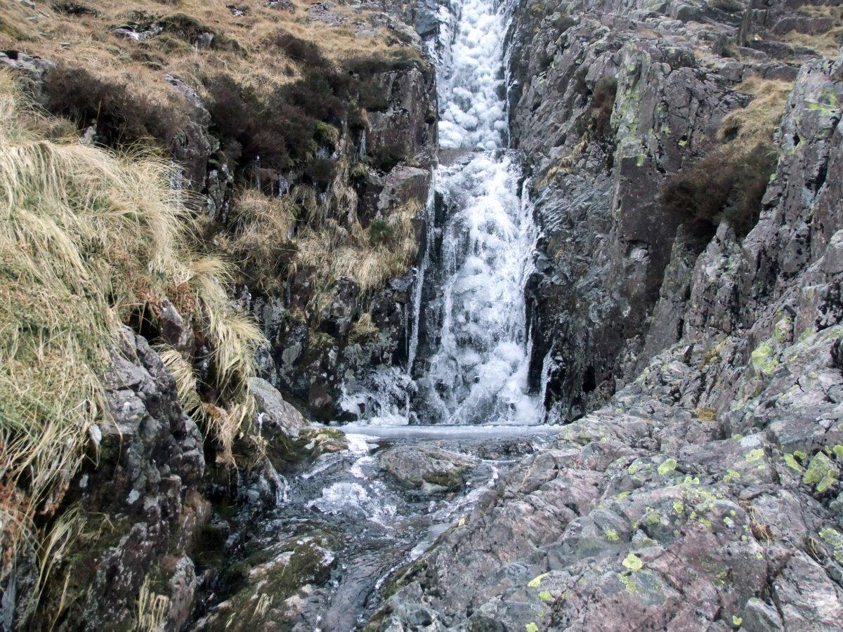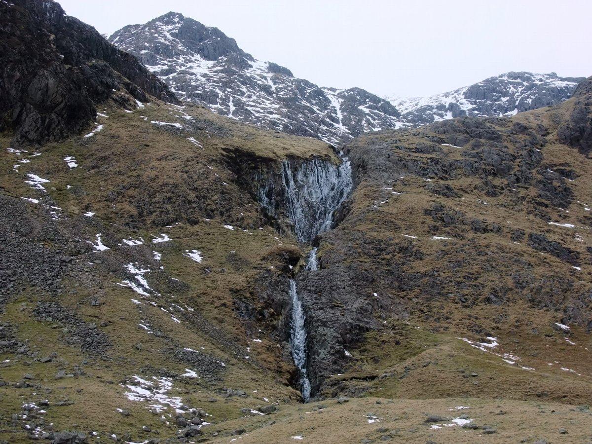 Cam Spout Crag on the left with Scafell Pike and Ill Crag further down Great Moss.