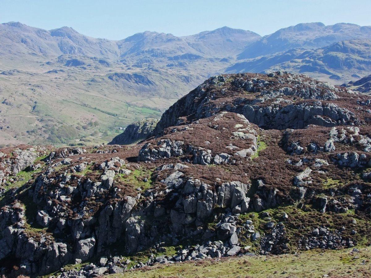 Looking down to Fox Bield Moss. Devoke Water in the distance.