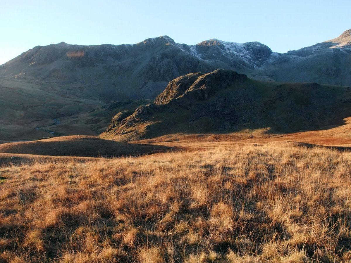Looking back up Eskdale. Bowfell in the distance.
