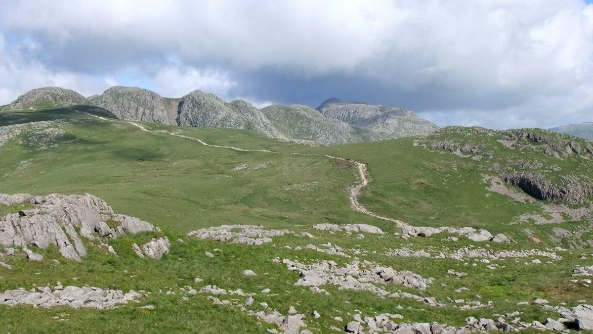 From Little Stand looking across Gaitkins to Cold Pike on the right, with Pike o' Blisco on the left in the distance.