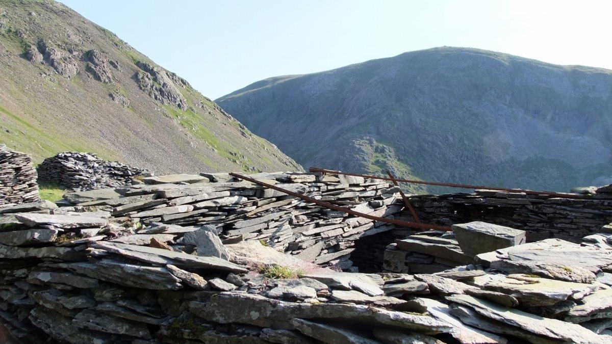 Abandoned slate workings on the climb back up to Brown Pike.