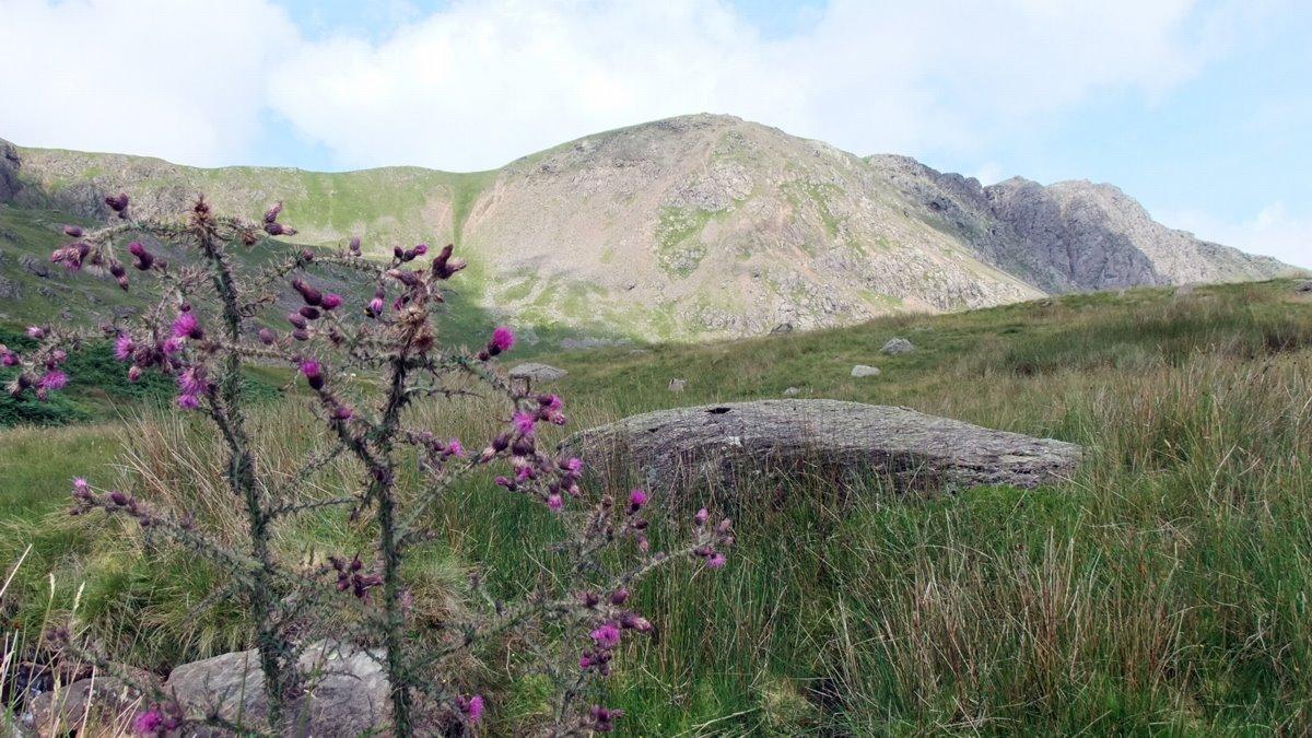 The Walna Scar track over the pass. Coniston Water in the distance.