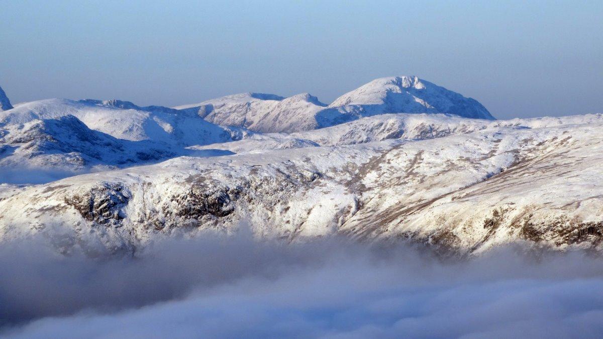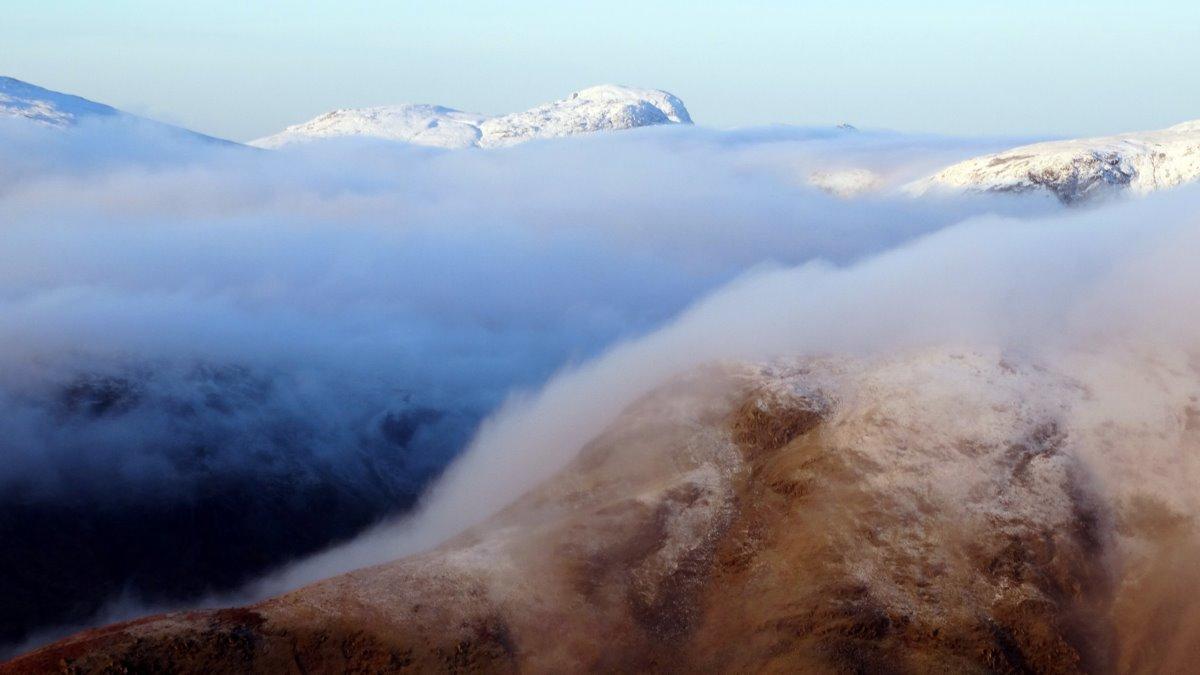 Close up of Skiddaw rising above the inversion.